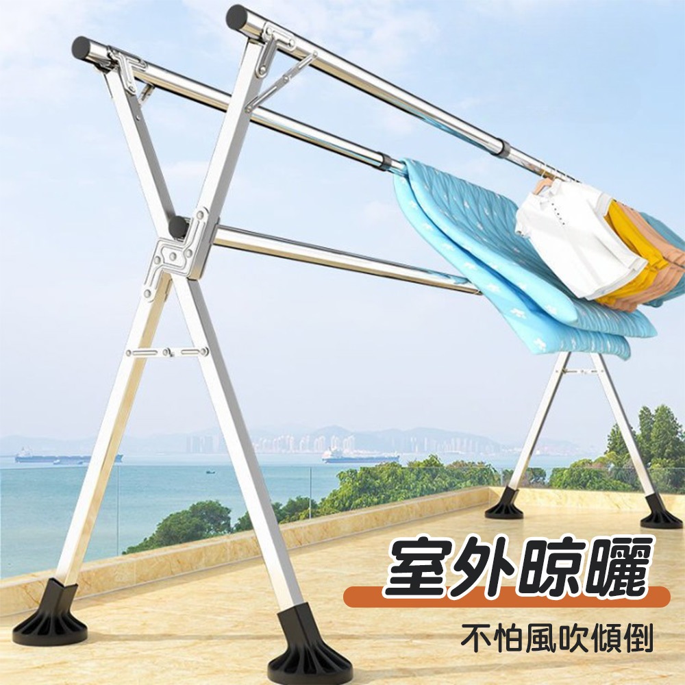 STYLE格調 | 全不鏽鋼2.4米伸縮摺疊曬衣架【HA-030-G】不銹鋼X型 曬被架 曬鞋架晾曬架 伸縮晾衣架 防風經典款–管徑22mm|升級款–管徑25mmClotheslines & Drying RacksSTYLE格調居家美學