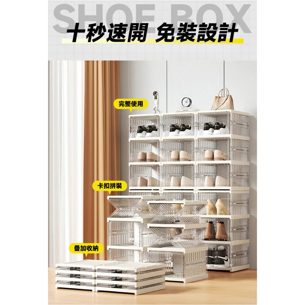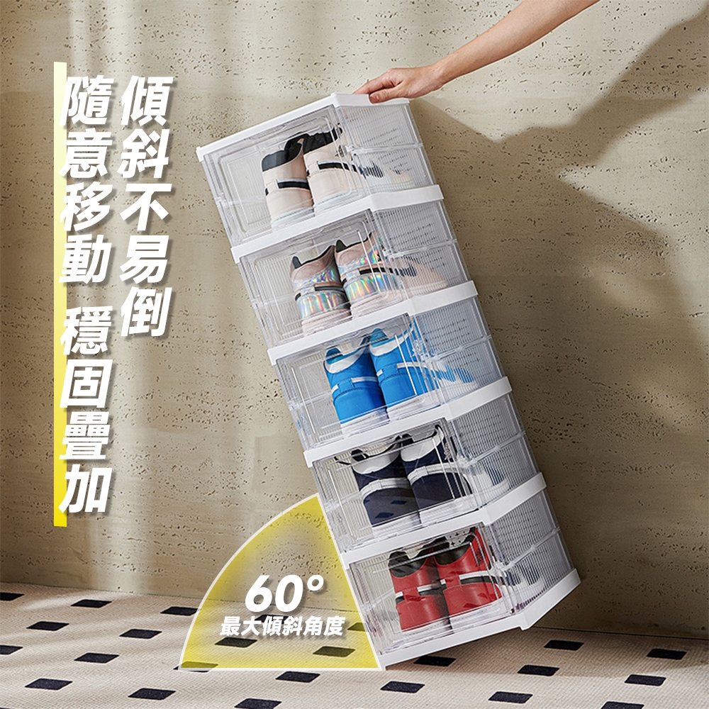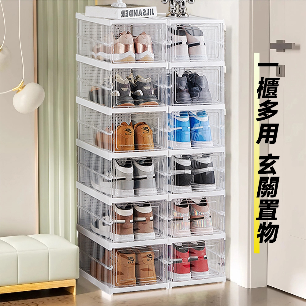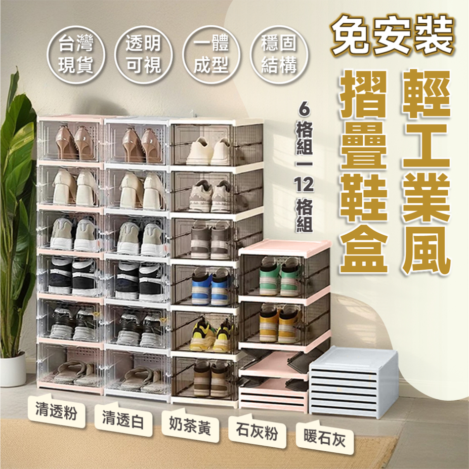 STYLE 格調|免安裝 折疊一體式加厚透明鞋盒 可疊加 鞋架 鞋櫃 收納盒 櫃 全透明 一體式 免組裝【SS-003】清透粉,6格款|清透粉,12格款|石灰粉,6格款|暖石灰,6格款|暖石灰,12格款|清透白,6格款|清透白,12格款|奶茶黃,6格款|奶茶黃,12格款|石灰粉,12格款Shoe Storage BoxesSTYLE格調居家美學
