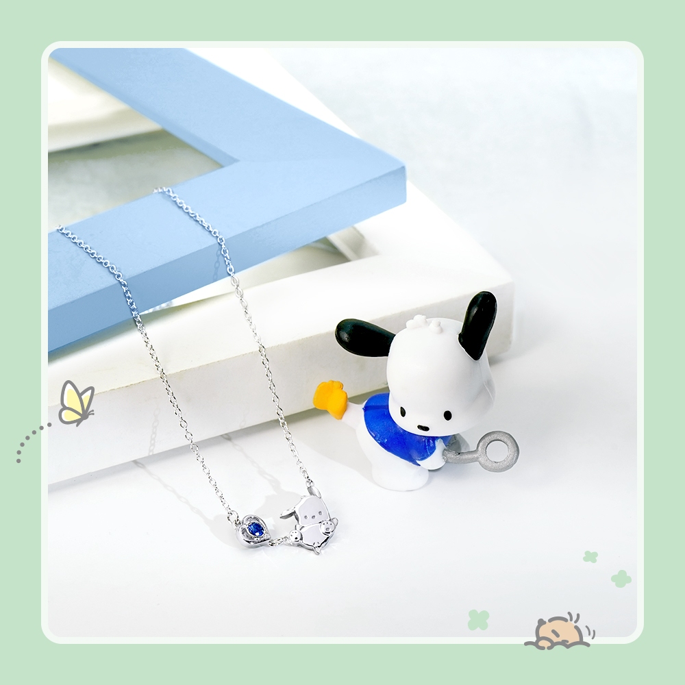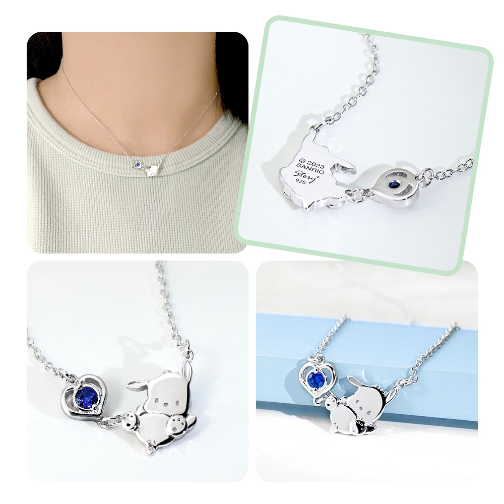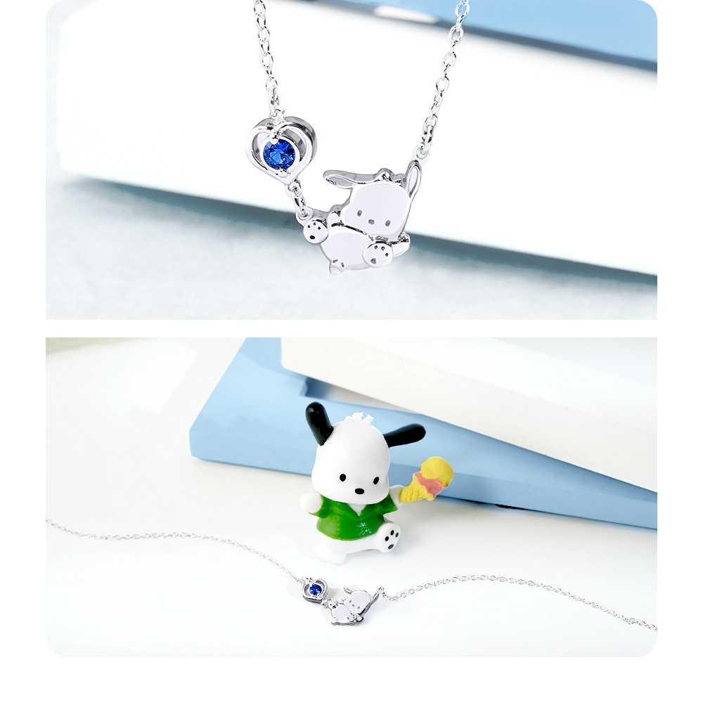 STORY故事銀飾-Pochacco經典系列-帕恰狗晶鑽純銀項鍊正常16吋(約40公分)|加2.5公分延長鍊|加5公分延長鍊STORY ACCESSORY 官方旗艦店