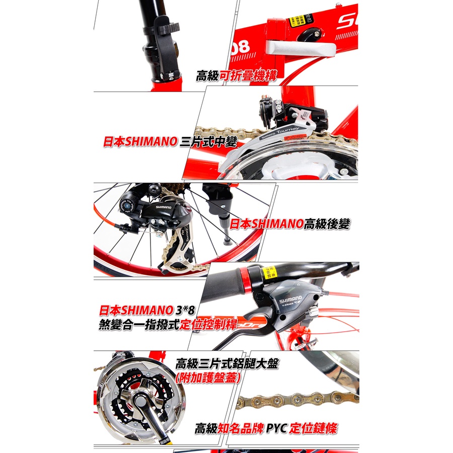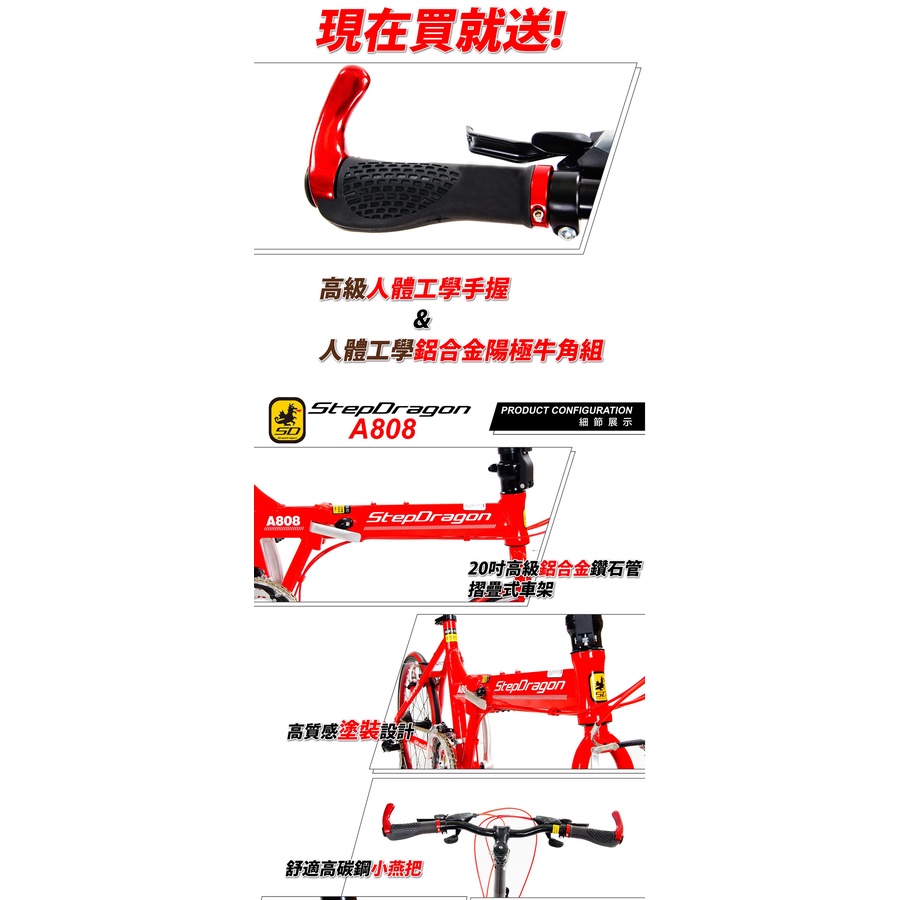 【StepDragon】領券再折A808 20吋451 日本 Shimano24速指撥式定位變速 鋁合金折疊車-服務升級白|紅|黑|藍CyclingStepDragon 史特龍電動車自行車