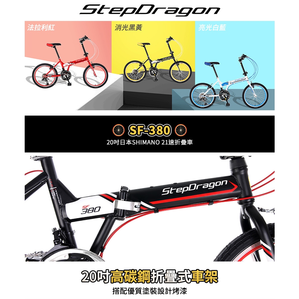 【StepDragon】領券再折扣SF-380 20吋搭配日本SHIMANO 21速 高碳鋼 折疊車消光黑紅|亮光白紅|星光藍|亮光白藍|消光黑黃|法拉利紅CyclingStepDragon 史特龍電動車自行車