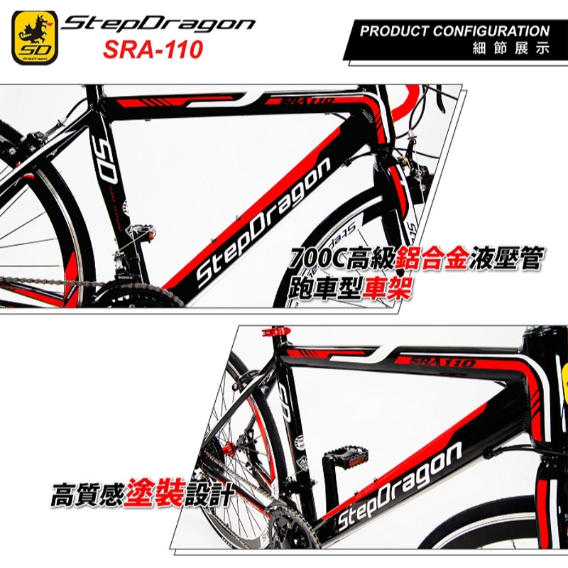 【StepDragon】SRA-110 風行者 日本Shimano 21速 鋁合金彎把公路車-服務升級免組裝 爆殺價白藍|黑黃|白紅|黑藍|黑紅CyclingStepDragon 史特龍電動車自行車