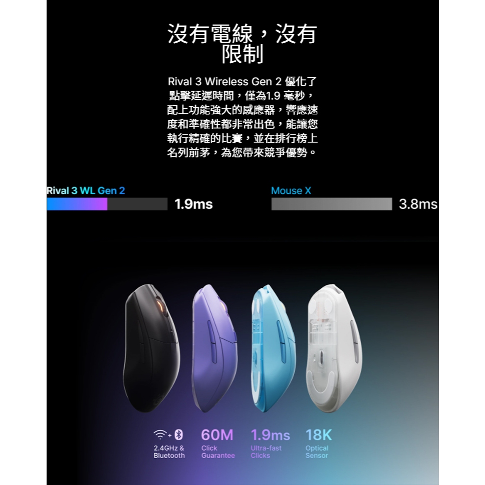 SteelSeries 賽睿 Rival 3 Gen 2 無線電競滑鼠 雙模連線 電競滑鼠 無線滑鼠 藍芽滑鼠夢澈紫,主商品|夢澈紫,主商品+黑色素面鼠墊|霧澈白,主商品|霧澈白,主商品+黑色素面鼠墊|星澈藍,主商品|星澈藍,主商品+黑色素面鼠墊|夜澈黑,主商品|夜澈黑,主商品+黑色素面鼠墊MiceSteelSeries賽睿官方旗艦店