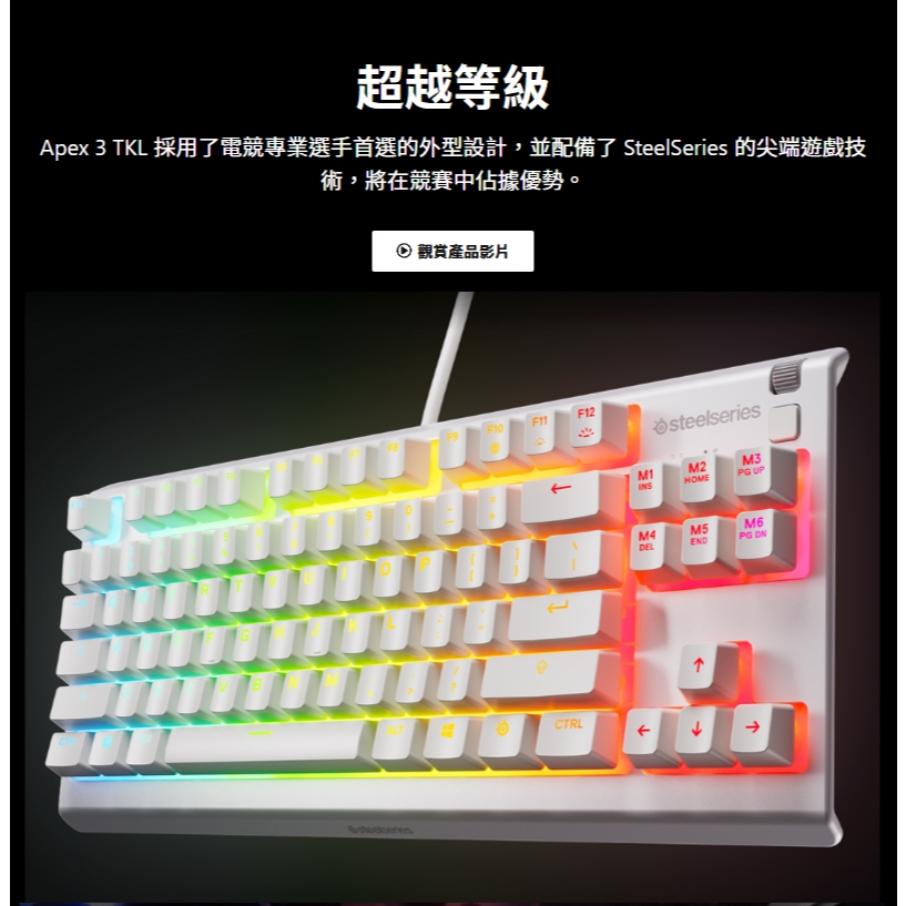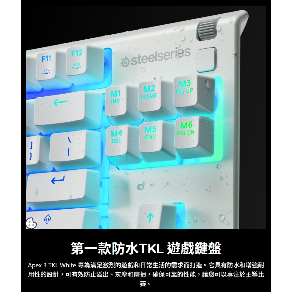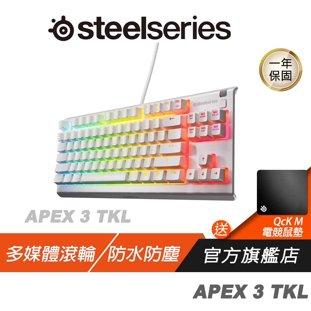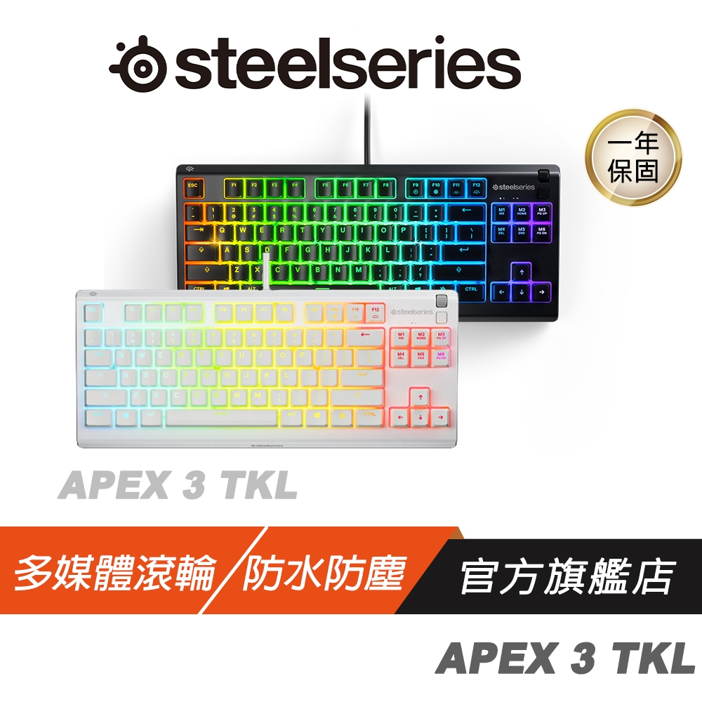 SteelSeries 賽睿 Apex 3 TKL 電競鍵盤 白色 多媒體滾輪 防水防塵 有線鍵盤 機械鍵盤 遊戲鍵盤黑色|白色|♻福利品-黑色【拆封測試】KeyboardsSteelSeries賽睿官方旗艦店