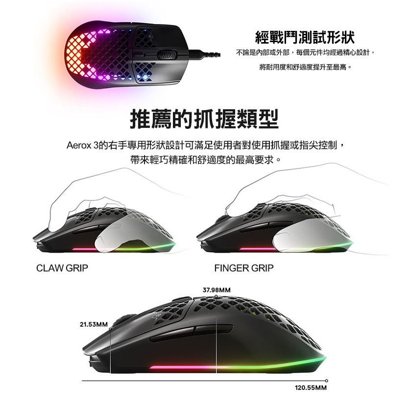 SteelSeries 賽睿 Aerox 3 Onyx 2022 無線電競滑鼠 人體工學 光學感測器 電競滑鼠 電腦滑鼠主商品|主商品+送素面鼠墊MiceSteelSeries賽睿官方旗艦店