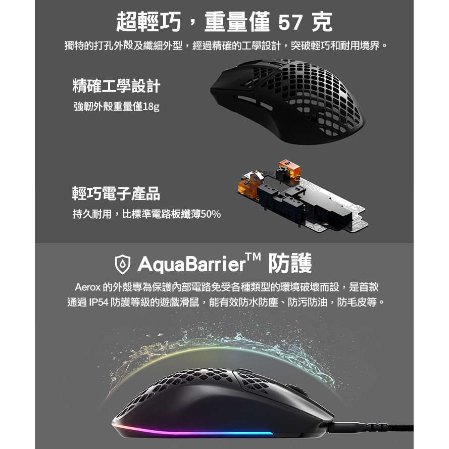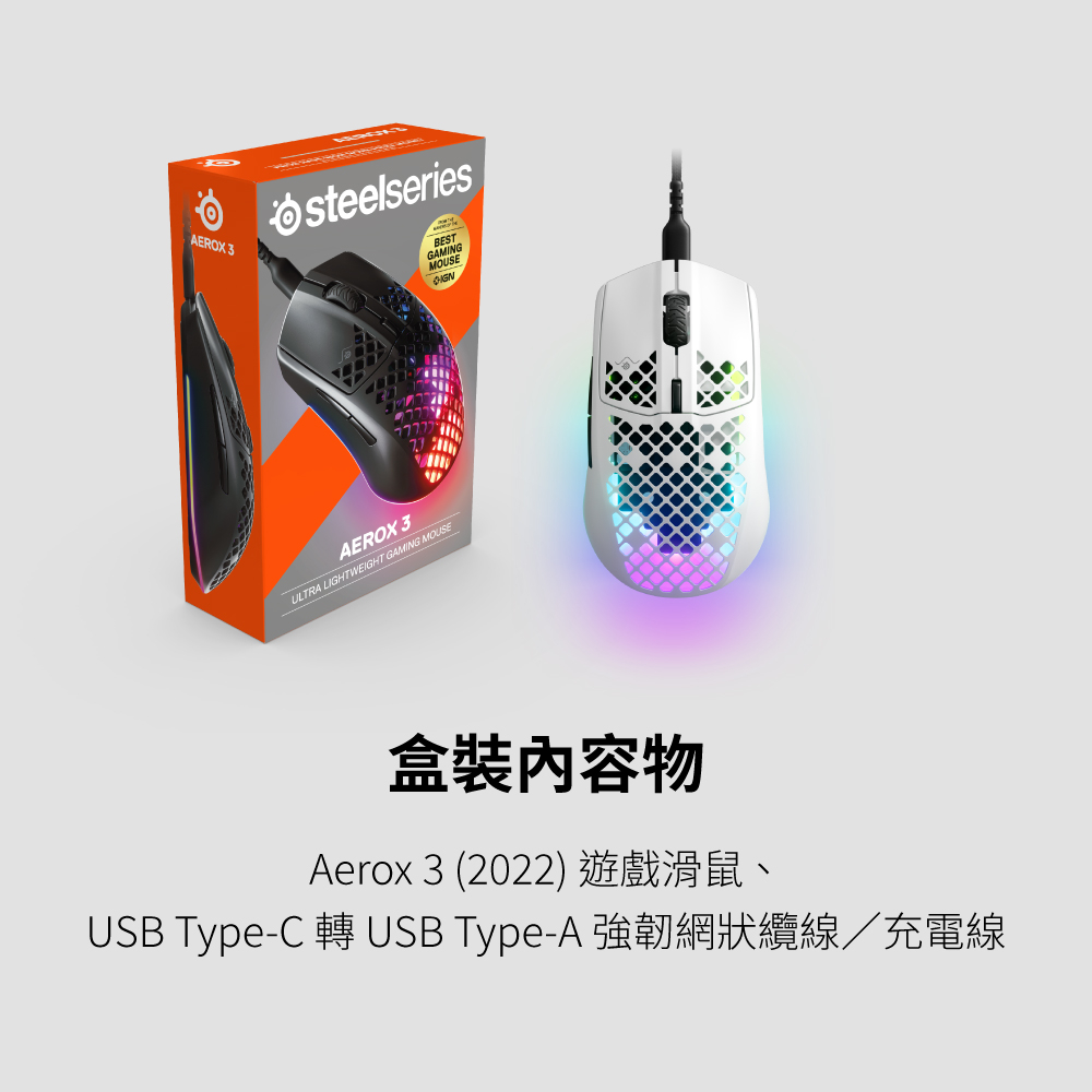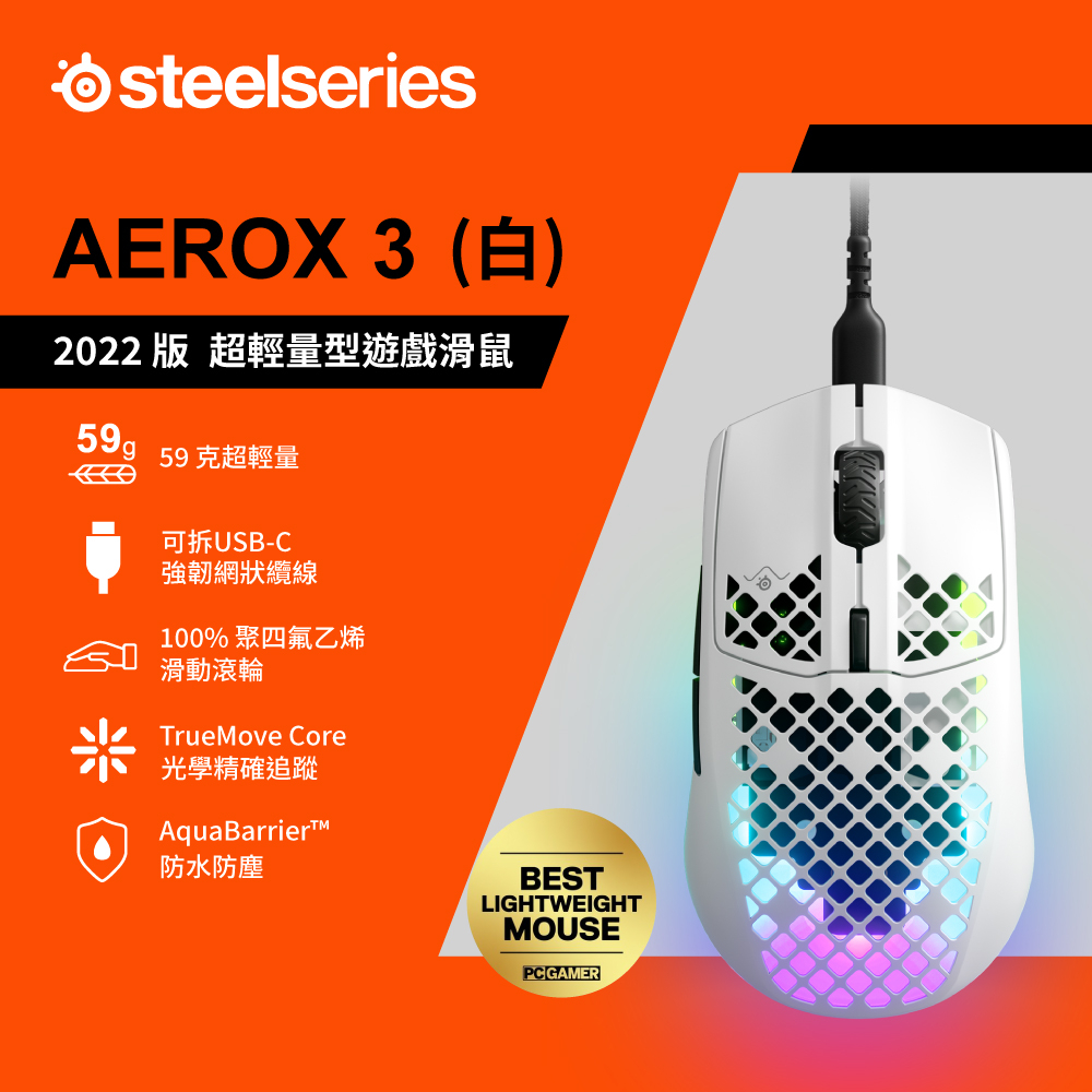 SteelSeries 賽睿 AEROX 3 有線電競滑鼠 輕量設計 防水防塵 電腦滑鼠 有線滑鼠 遊戲滑鼠 電競滑鼠黑,主商品|白,主商品|白,主商品+送素面鼠墊|黑,主商品+送素面鼠墊MiceSteelSeries賽睿官方旗艦店