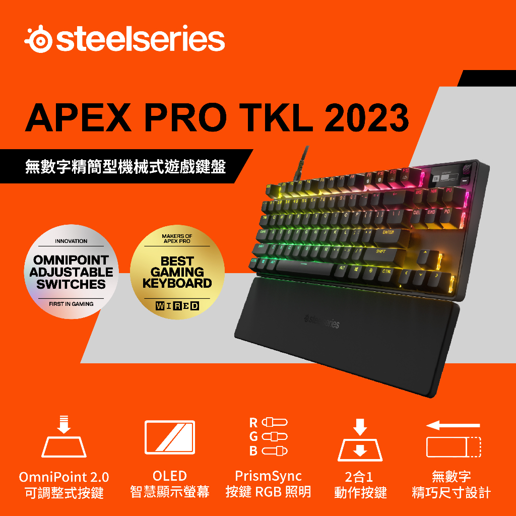 SteelSeries 賽睿 Apex Pro TKL 電競鍵盤 2023 巨集設定 有線鍵盤 機械鍵盤 遊戲鍵盤英文版KeyboardsSteelSeries賽睿官方旗艦店