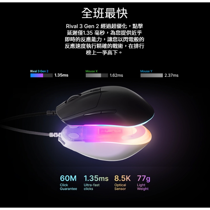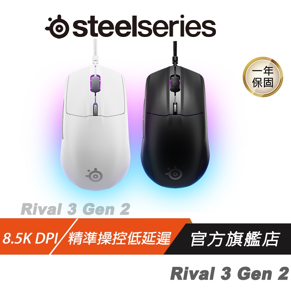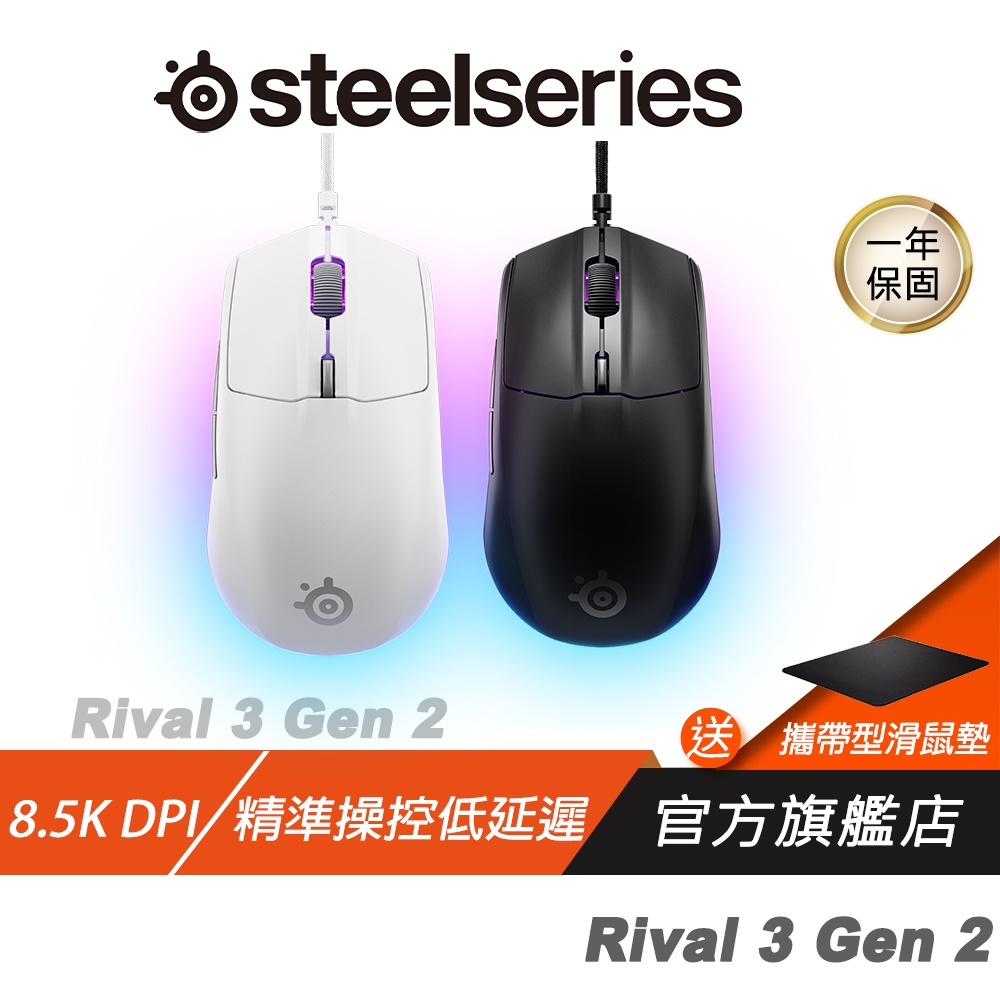 SteelSeries 賽睿 Rival 3 Gen 2 有線電競滑鼠 18K DPI 光學感測器 電競滑鼠 有線滑鼠黑色,主商品|白色,主商品|黑色,主商品+黑色素面鼠墊|白色,主商品+黑色素面鼠墊MiceSteelSeries賽睿官方旗艦店
