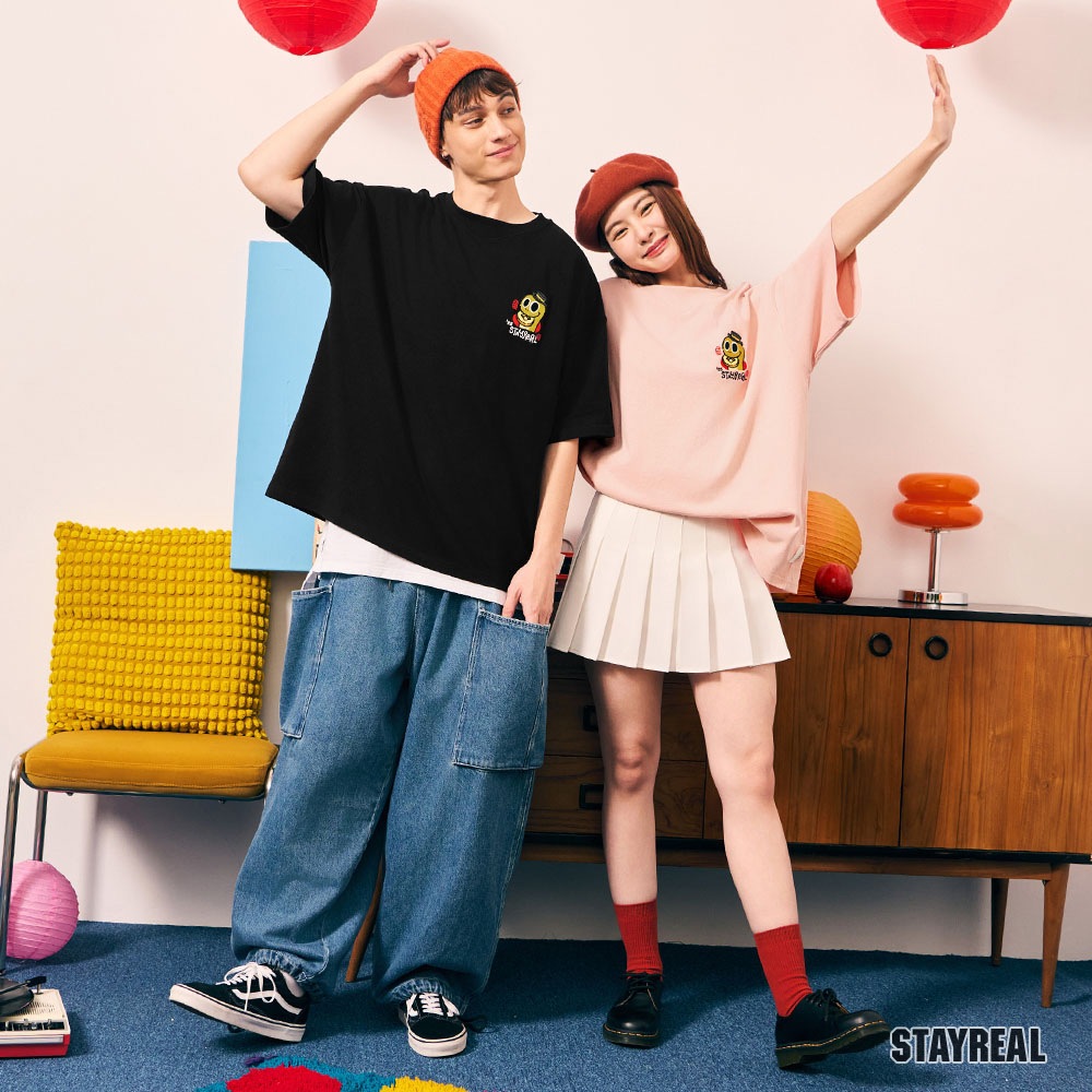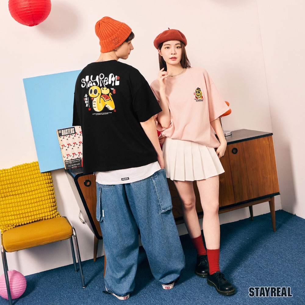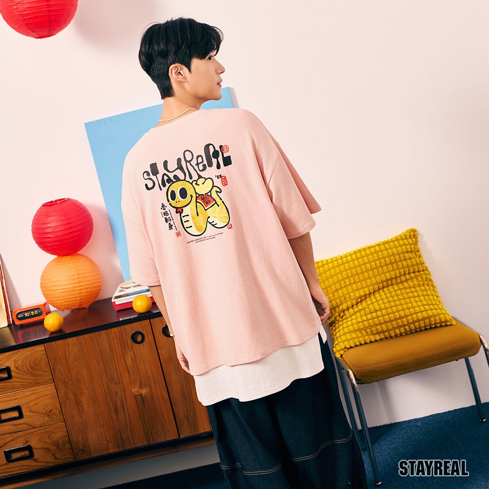 STAYREAL 魯蛇翻身好運寬版T粉紅,L|白,M|白,L|黑,M|黑,L|粉紅,MT-ShirtsSTAYREAL官方直營
