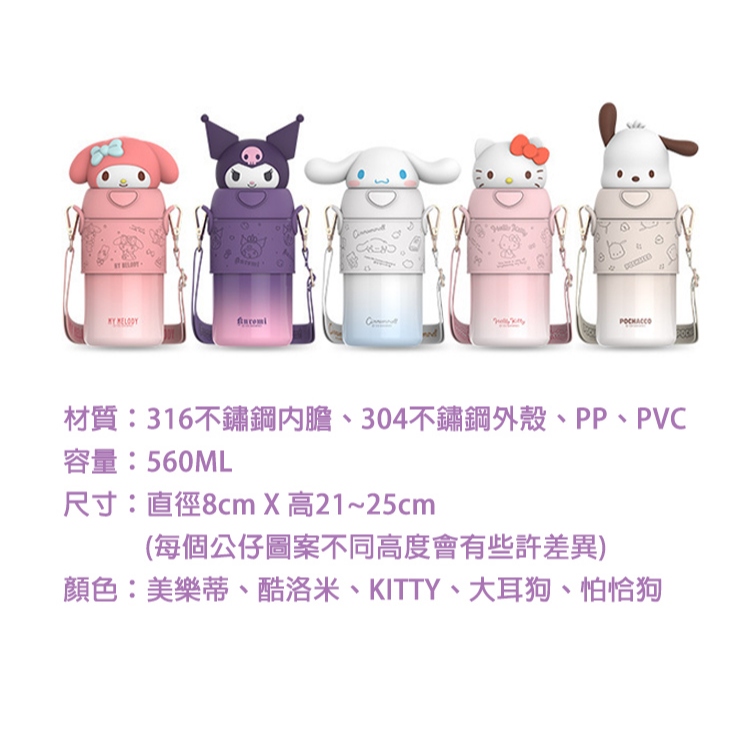 【STAR BABY】三麗鷗明星萌趣公仔 吸管水壺 升級316不鏽鋼 保冷/保溫 背帶水壺560ML美樂蒂|KITTY|大耳狗|帕恰狗Water Bottles & AccessoriesSTAR BABY 官方直營店