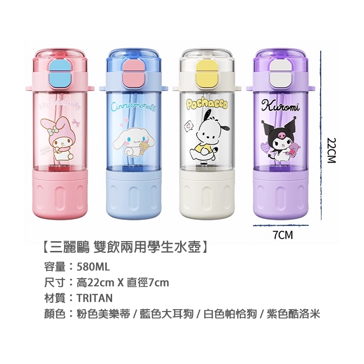 【STAR BABY】三麗鷗明星 酷洛米 TRITAN 直飲/吸管 一蓋兩用 背帶水壺580ML白色帕恰狗|紫色酷洛米|粉色美樂蒂|天藍大耳狗Water Bottles & AccessoriesSTAR BABY 官方直營店