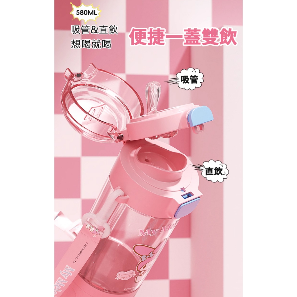 【STAR BABY】三麗鷗明星 酷洛米 TRITAN 直飲/吸管 一蓋兩用 背帶水壺580ML