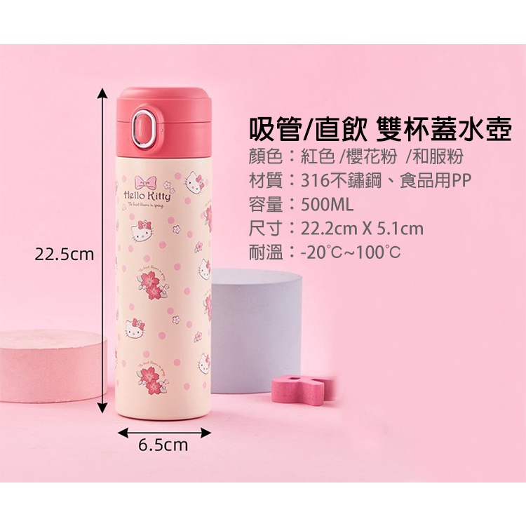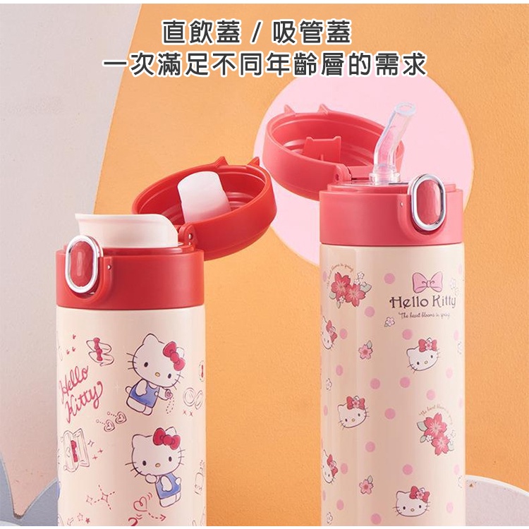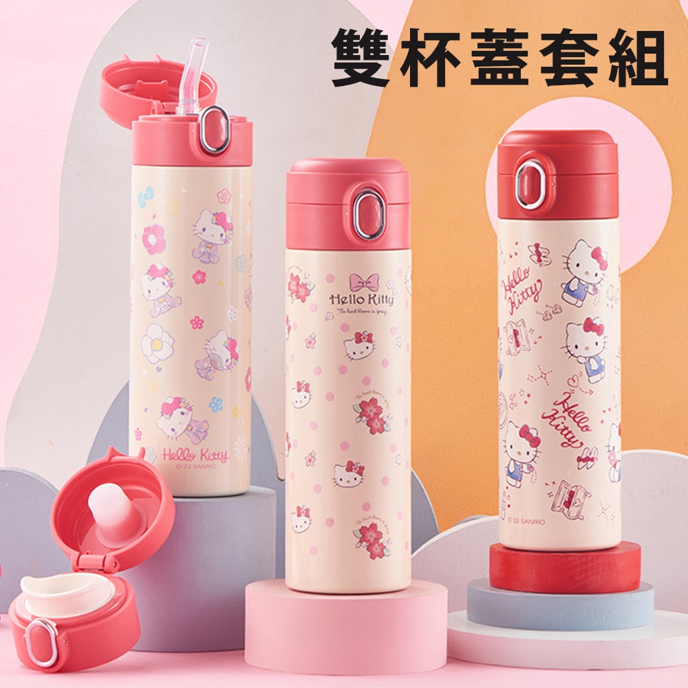 【STAR BABY】三麗鷗HELLO KITTY 滿版印花316不鏽鋼直飲式/吸管式 雙杯蓋兒童水壺套組 500ML紅色|和服粉|櫻花粉|配件組X3組(吸嘴頭+吸管)Water Bottles & AccessoriesSTAR BABY 官方直營店