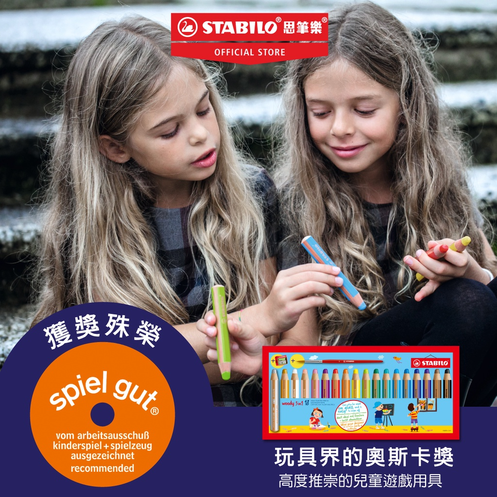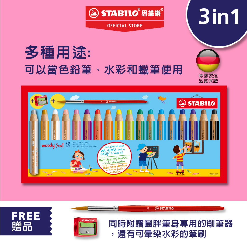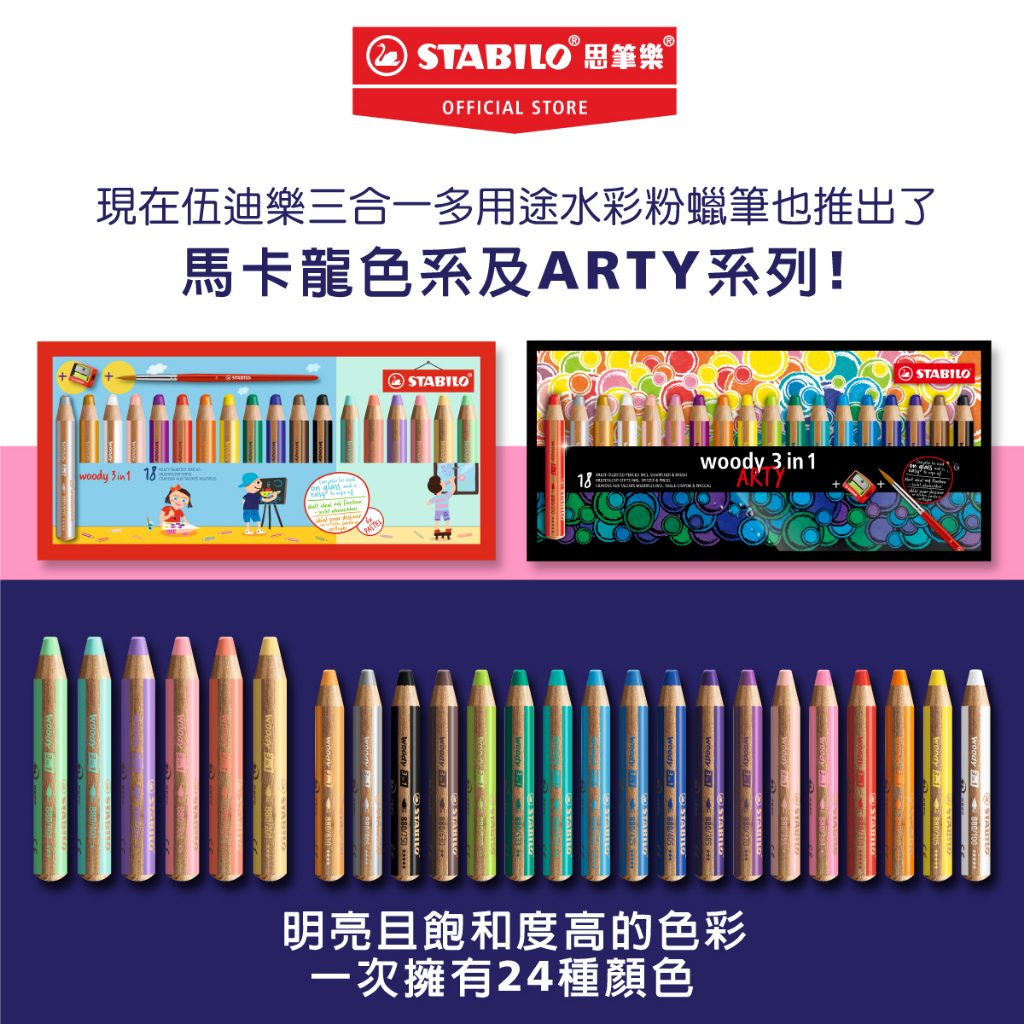 【STABILO思筆樂】Woody 3 in 1 伍迪樂可水洗三合一水彩粉蠟筆 經典色/馬卡龍色/雙色雙色-10色組(內附專用削筆器)|經典色-6色組(內附專用削筆器)|經典色-10色組(內附專用削筆器)|經典色-18色組(內附水彩筆&專用削筆器|馬卡龍色-6色組(內附削筆器)|馬卡龍色-18色組 內附水彩筆&專用削筆|雙色-6色組(內附專用削筆器)|15色桌上展示組(內附削筆器)Crayons & PastelsSTABILO思筆樂 |官方旗艦店