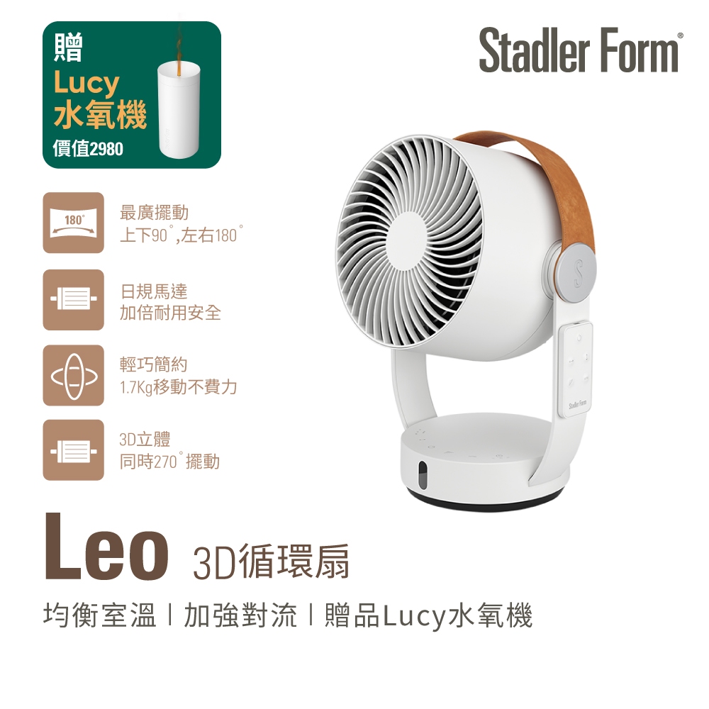 【瑞士 Stadler Form】Leo 3D循環風扇 循環扇 + Lucy 水氧機 香氛機 (月幕白)|官方旗艦店Leo+Lucy白CoolingStadler Form官方商城