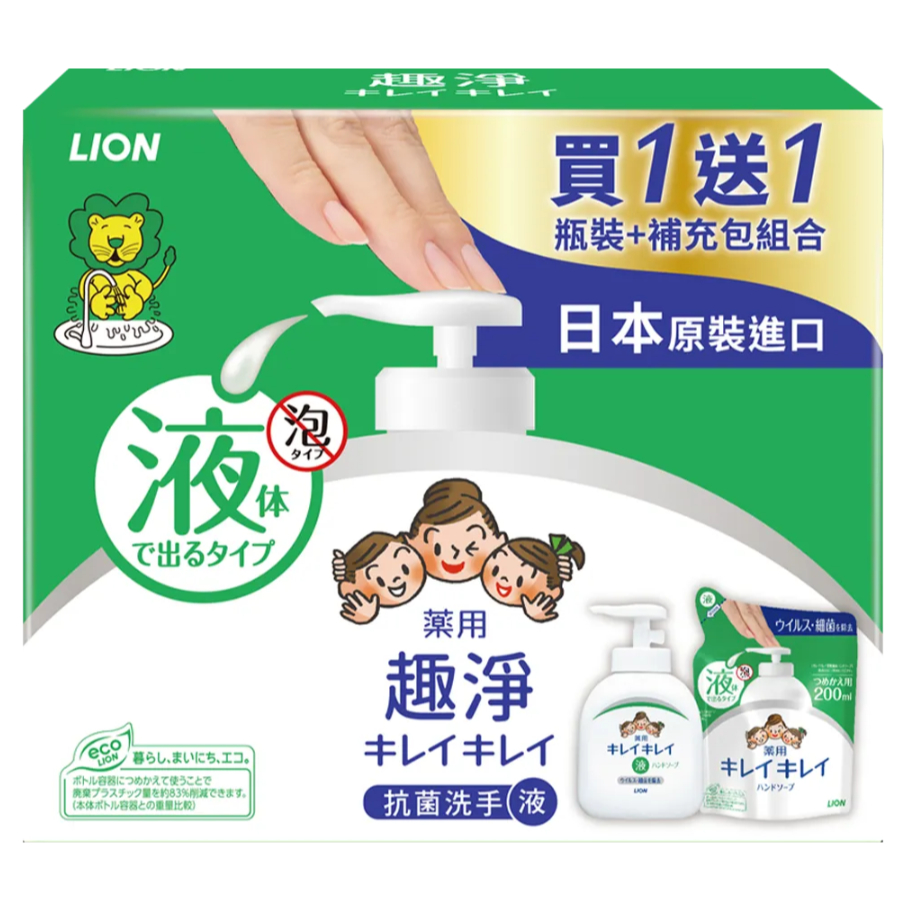 日本原裝 LION獅王 趣淨抗菌洗手液1+1組 瓶250ml送補200ml 盒裝 ST9日本原裝 LION獅王 趣淨抗菌洗手液1+1組 瓶250ml送補200ml 盒裝 ST9Hand CareST9PLUS 品牌 零售 批發 團購