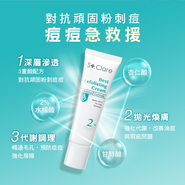 St.Clare聖克萊爾 2%水楊酸淨痘水凝乳30ml(杏仁酸添加)2入|水精華+淨痘水凝乳|1入|無酸抗痘精華+水凝乳|水精華+水凝乳+無酸抗痘精華Facial MoisturizerSt.Clare聖克萊爾 官方旗艦店