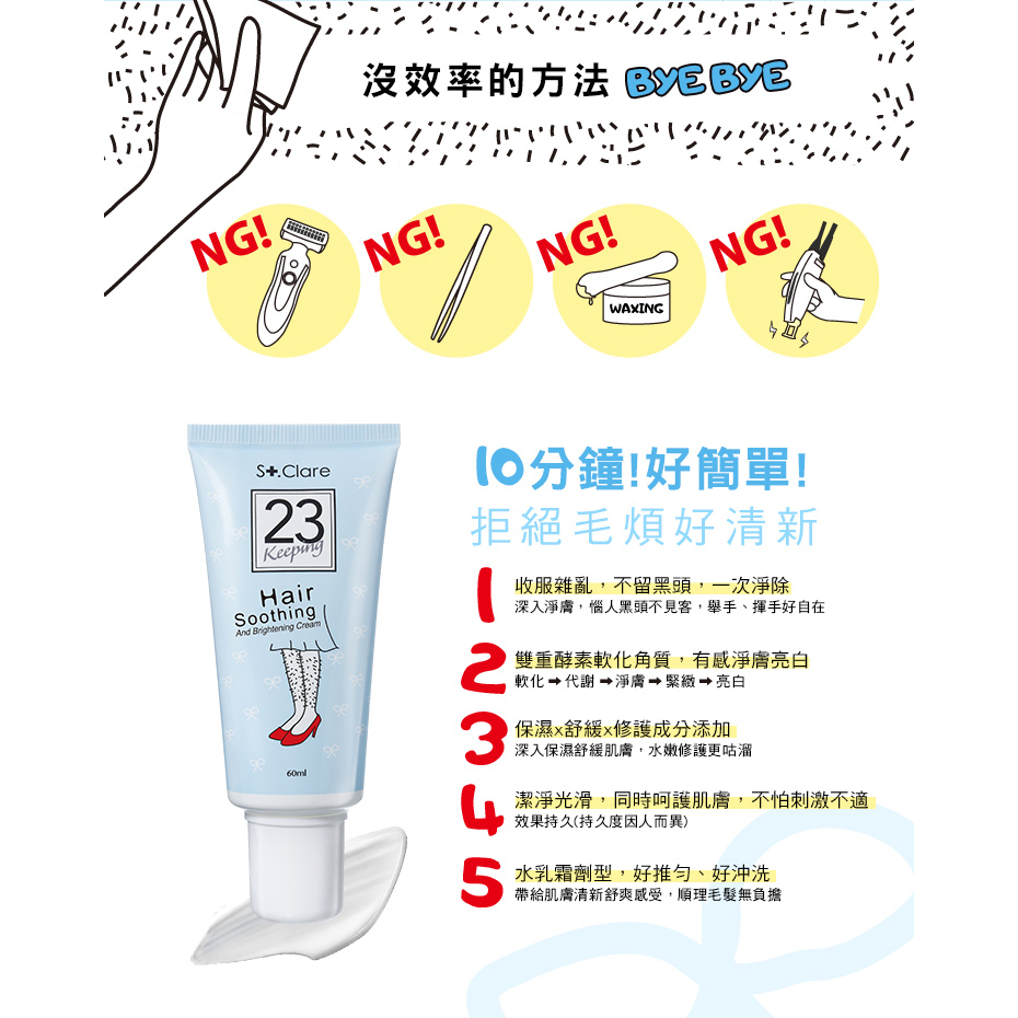 St.Clare聖克萊爾 一抹溜溜毛髮順理霜60ml(多入任選)(擺脫毛手毛腳)1入|3入Hair Removal Cream & WaxSt.Clare聖克萊爾 官方旗艦店