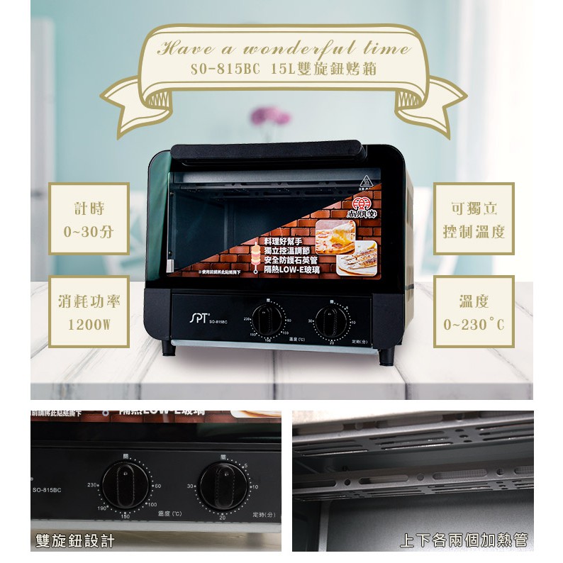 尚朋堂 15L雙旋鈕控溫烤箱SO-815BC福利品(小刮傷)|新品OvensSPT精緻家電館