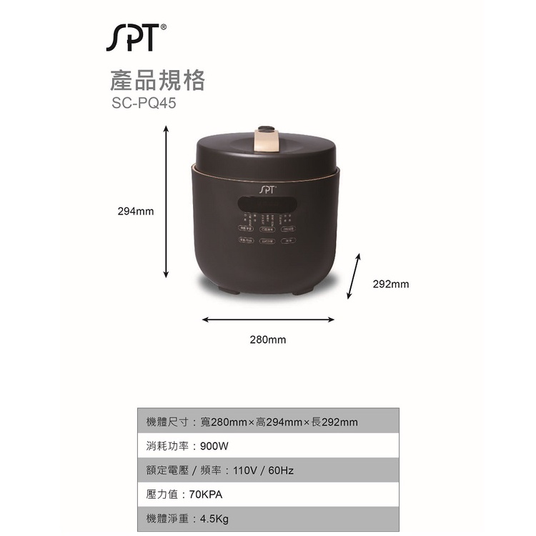 尚朋堂 5L微電腦壓力電子鍋SC-PQ45尚朋堂 5L微電腦壓力電子鍋SC-PQ45Pressure CookersSPT精緻家電館