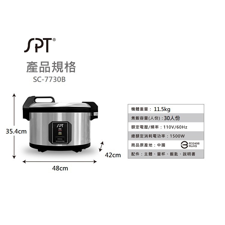 尚朋堂30人份商業用電子鍋SC-7730B單買專用內鍋無主機|SC-7730B一組Rice CookersSPT精緻家電館