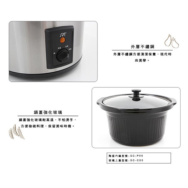 【尚朋堂】養生燉鍋SC-5500S(內鍋+主機)|單買內鍋Slow Cookers & Sous Vide MachinesSPT精緻家電館