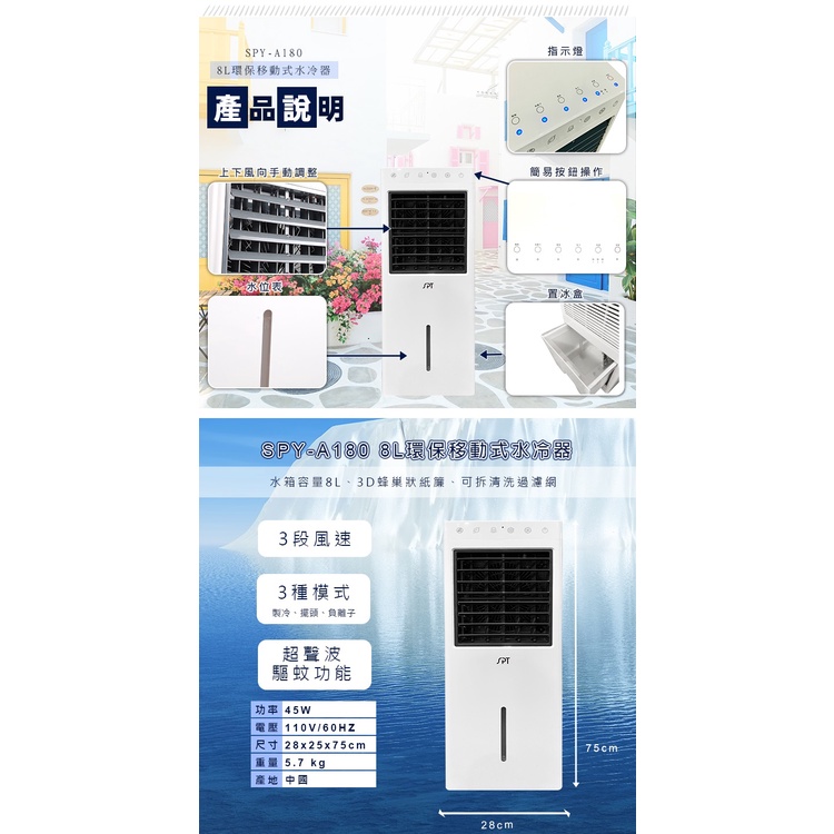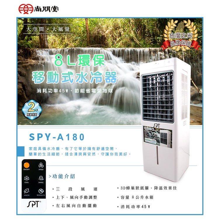 尚朋堂 8公升環保移動式水冷器SPY-A180新品|福利品CoolingSPT精緻家電館