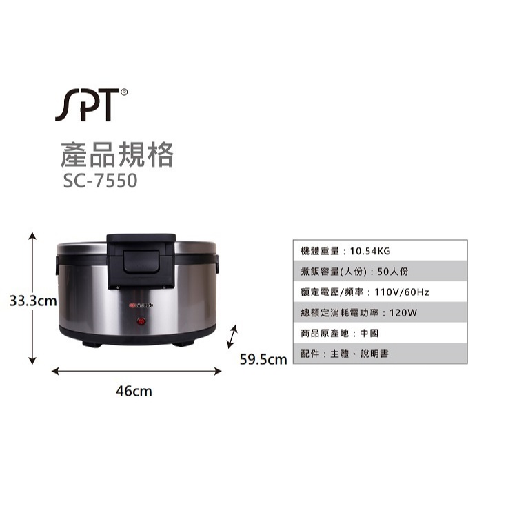 50人份營業用保溫飯鍋SC-7550(保溫專用)50人份營業用保溫飯鍋SC-7550(保溫專用)Rice CookersSPT精緻家電館