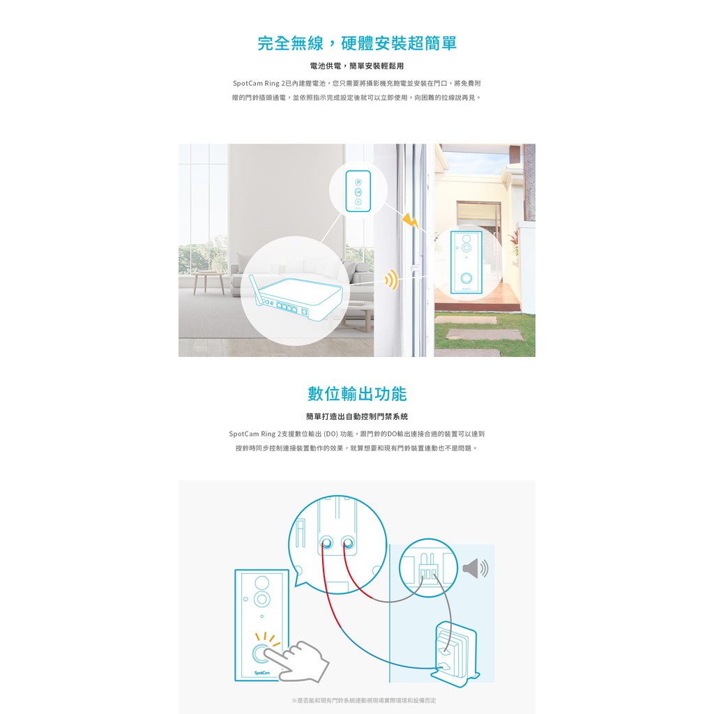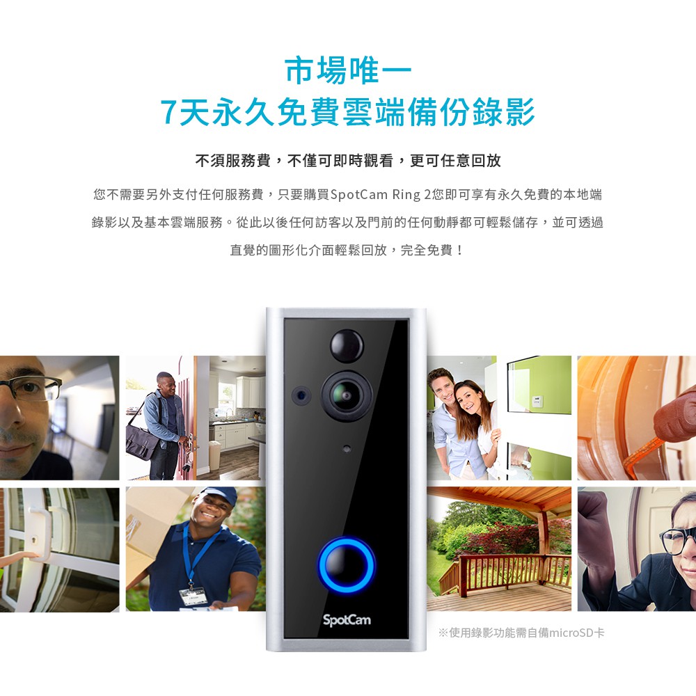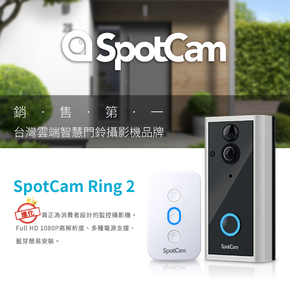 SpotCam Ring 2 智慧門鈴 超廣角180度 遠端監控 動態偵測 免插電 門鈴攝影機 視訊監視器 視訊門鈴SpotCam Ring 2 智慧門鈴 超廣角180度 遠端監控 動態偵測 免插電 門鈴攝影機 視訊監視器 視訊門鈴DoorbellsSpotCam 真雲端監視器 l 台灣在地品牌智慧無線監控攝影機