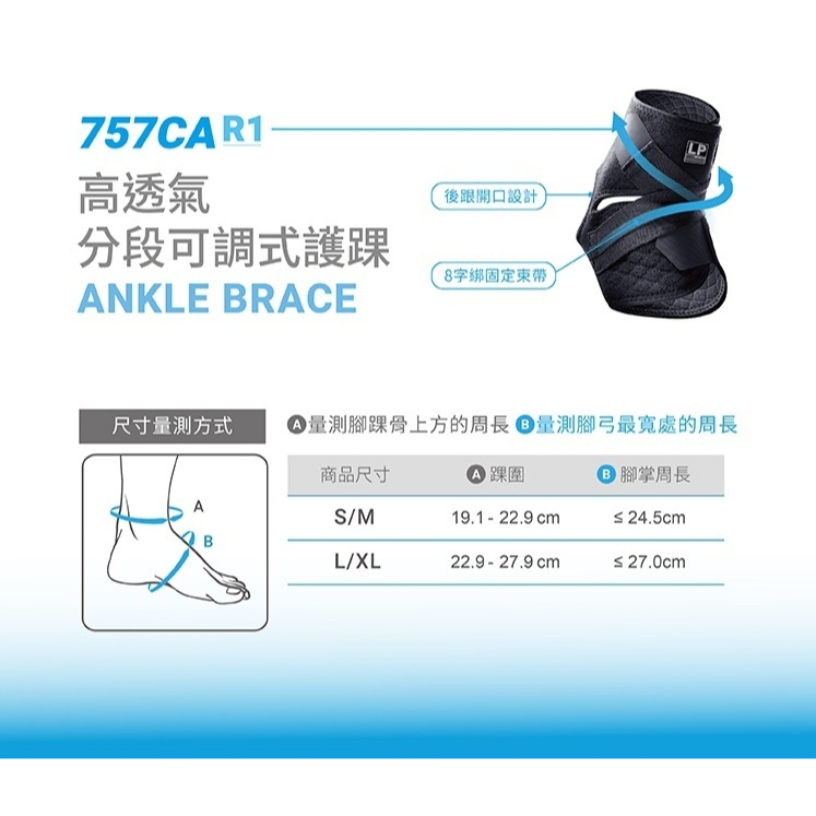 LP 最新款 757CA R1 高透氣分段可調式護踝(運動狂人)護踝護具 高透氣[滿額領免運+保證原廠貨]S/M 19.1~22.9 <24.5|L/XL 22.9~27.9 <27Gym Protective GearsSPORTYMAD運動狂人 官方旗艦店
