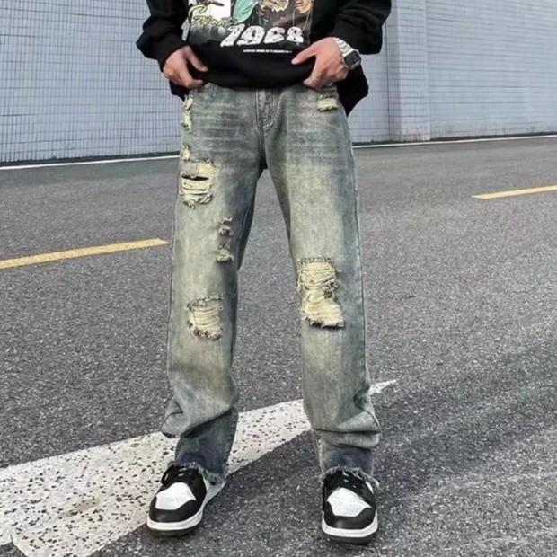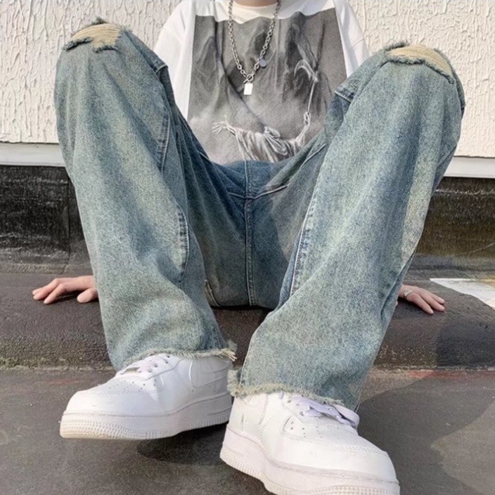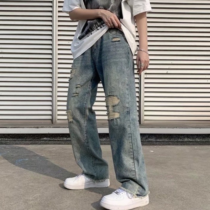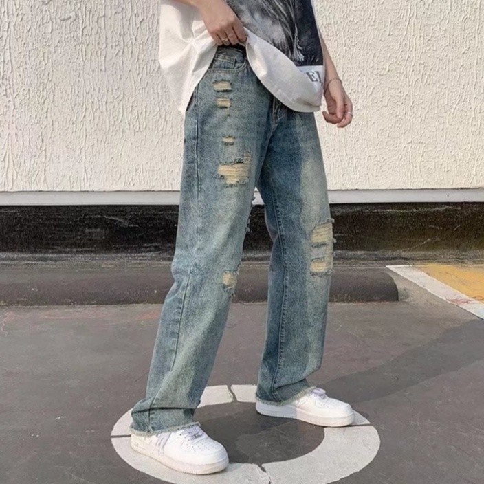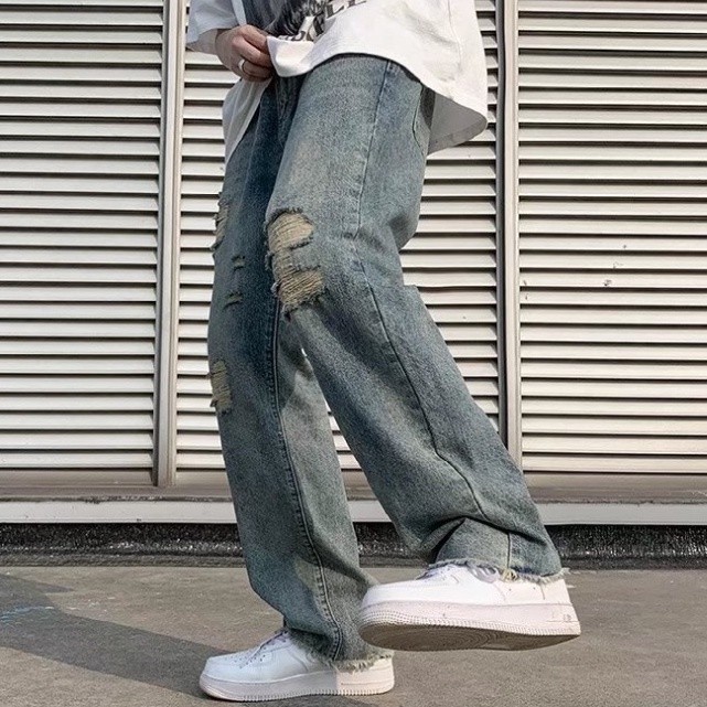 【M世代】牛仔破褲 牛仔長褲 男牛仔褲 破膝牛仔褲 男九分褲 刷破牛仔褲 淺色牛仔褲 破洞牛仔褲 寬鬆牛仔褲AJ1016藍色,L|藍色,XL|藍色,2XL|藍色,MM世代官方