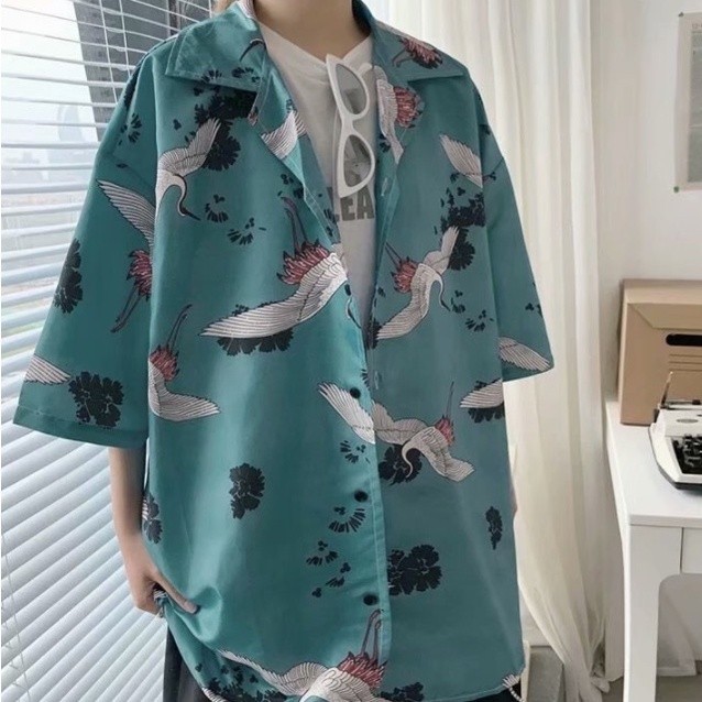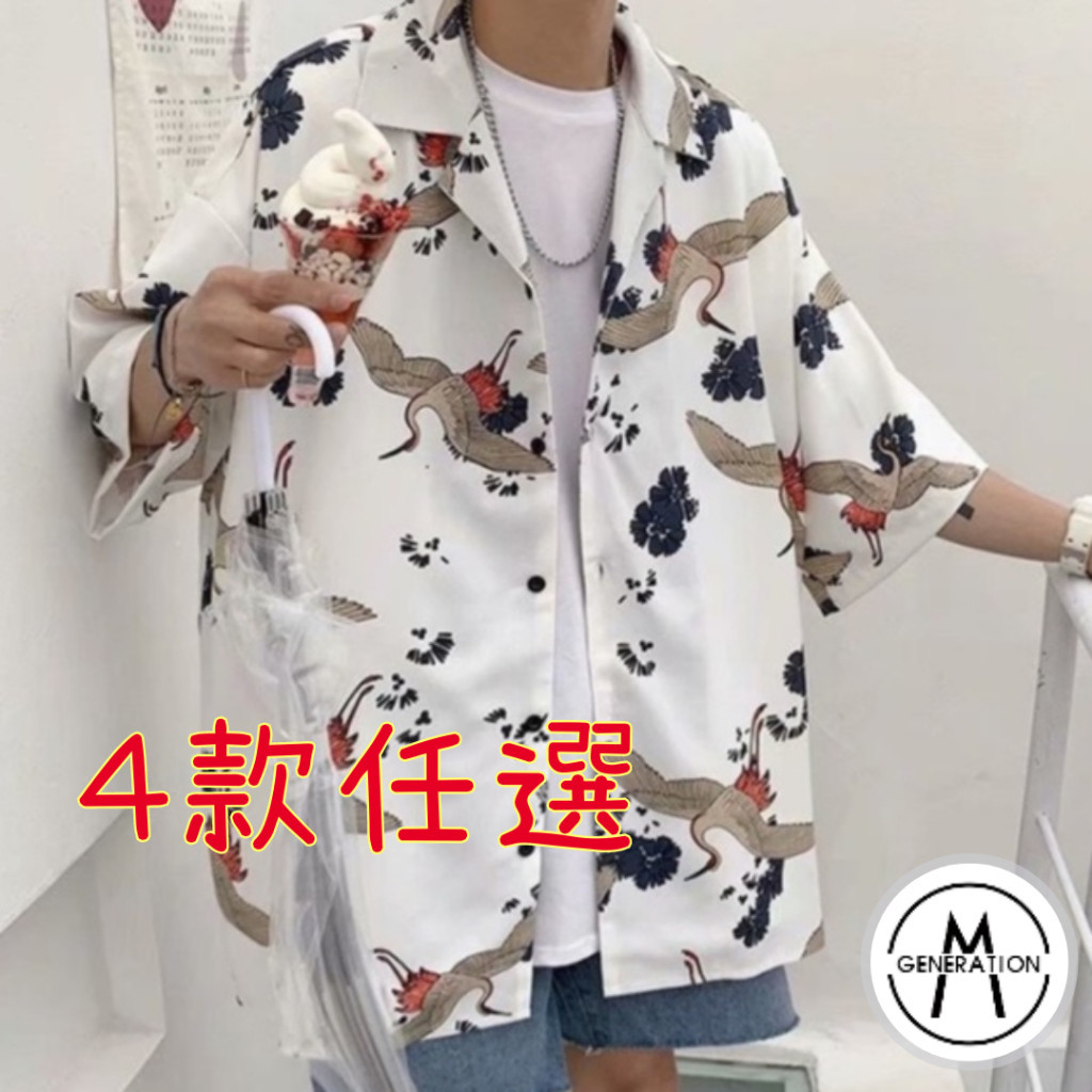 【M世代】4款可選男女同款短袖襯衫夏威夷度假襯衫男 衣服 上衣 網紅同款男襯衫 INS五分袖襯衫港風 寬鬆花襯衫