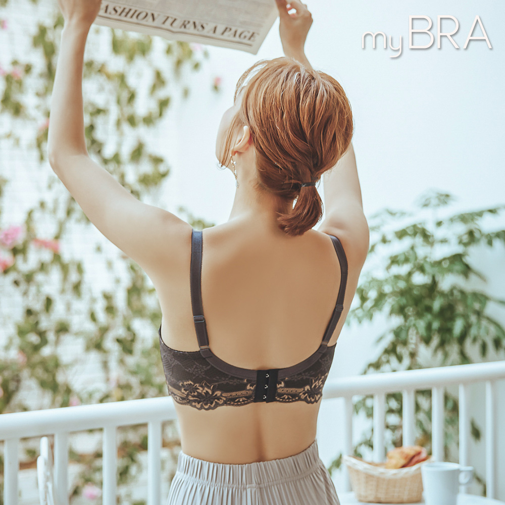 【myBRA】花語書籤 水滴型蕾絲機能軟鋼圈內衣-黑藕 女內衣 集中提托 性感蕾絲 小胸爆乳 收副乳 防下垂 調整型