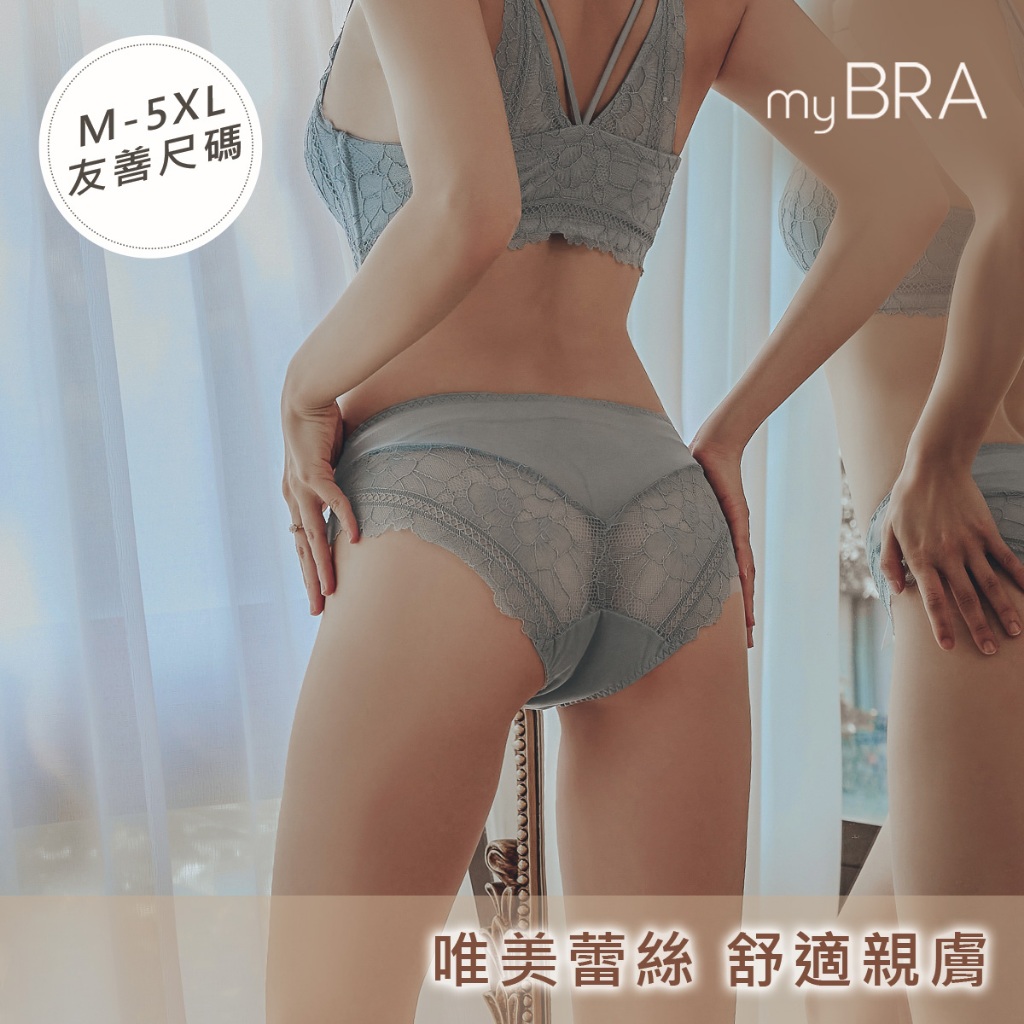 【myBRA】前扣爆爆®機能款 性感蕾絲低腰內褲 藍/白/黑/綠/紅/紫 女內褲 三角褲 大尺碼 舒適透氣包臀 蕾絲內褲