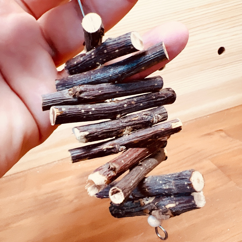 MY PET BIRD 天然蘋果枝|鸚鵡啃咬 磨牙|蘋果木蘋果枝 W052B 不銹鋼串蘋果枝ToysMY PET BIRD ✨我的寵物鳥