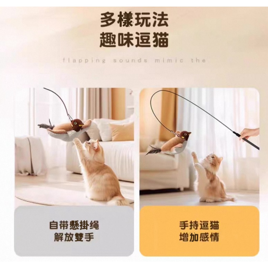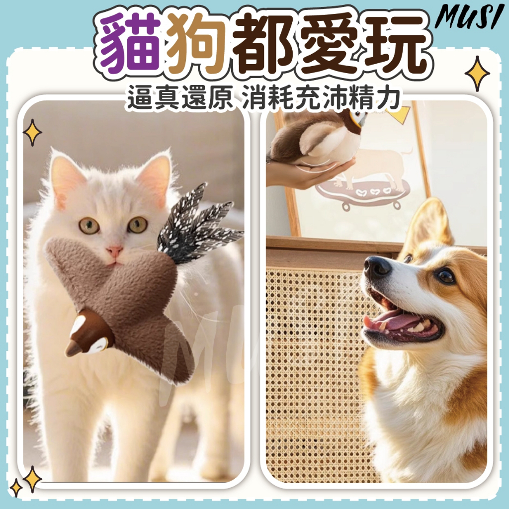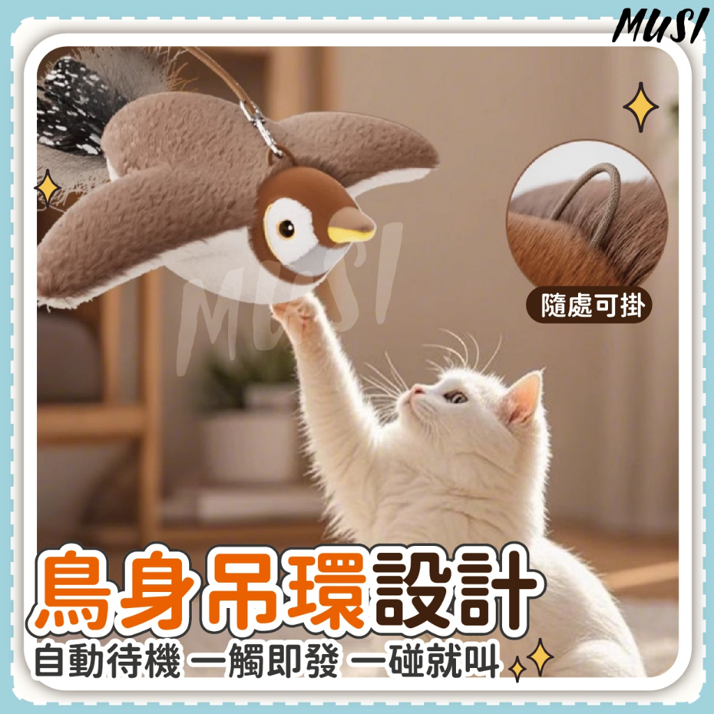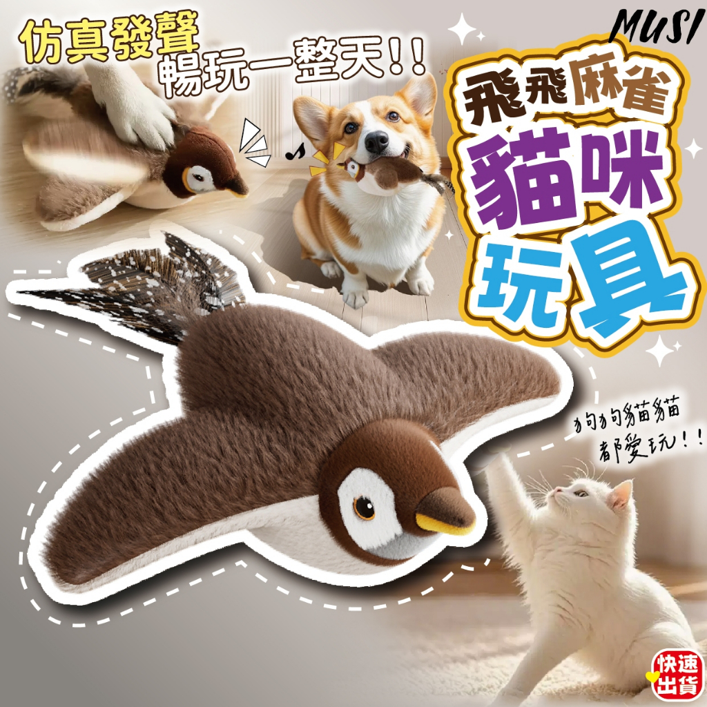 [會叫會動激發狩獵欲]貓玩具 貓咪玩具 狗狗玩具 狗狗貓貓皆可玩 寵物玩具 逗貓玩具 狗玩具飛飛麻雀貓咪玩具-白臉麻雀 現貨ToysMUSI 口罩&包包帽子 專賣