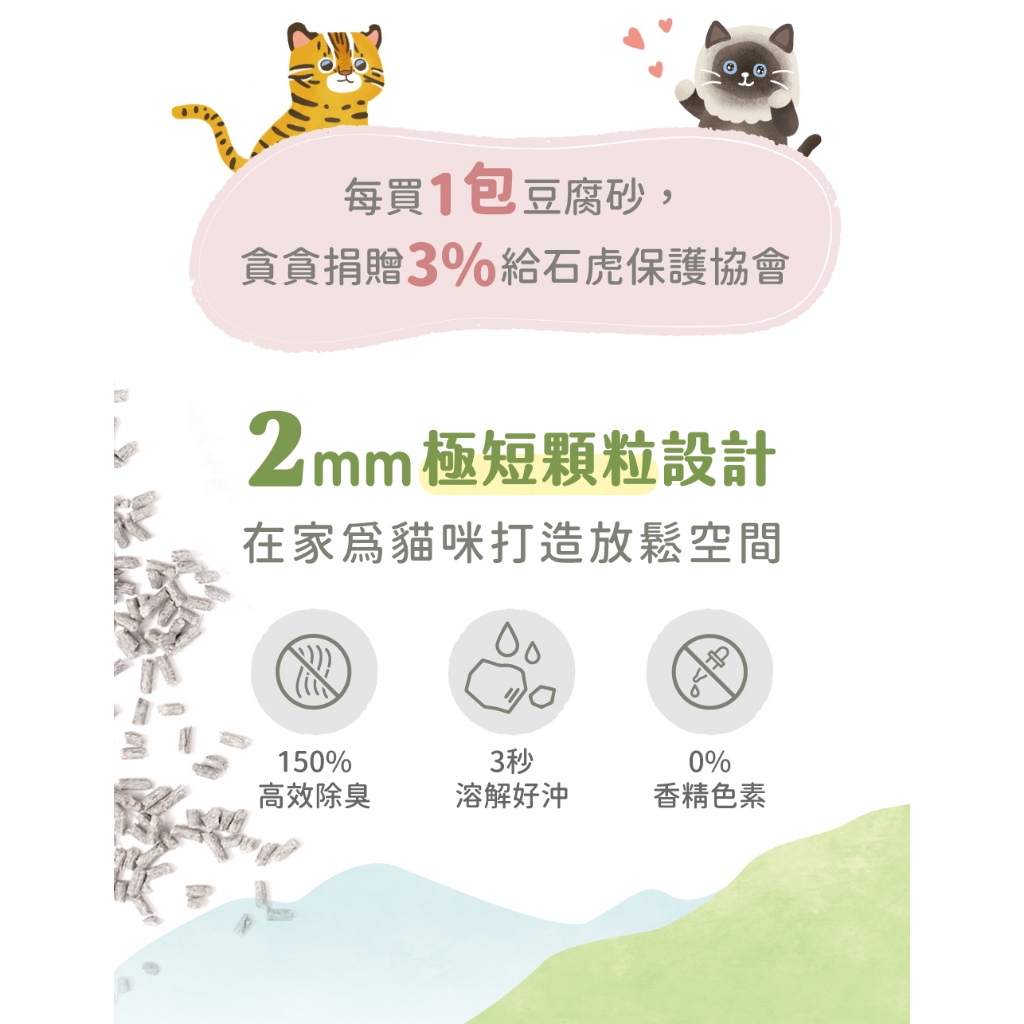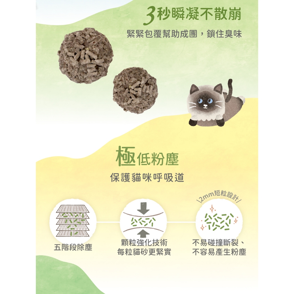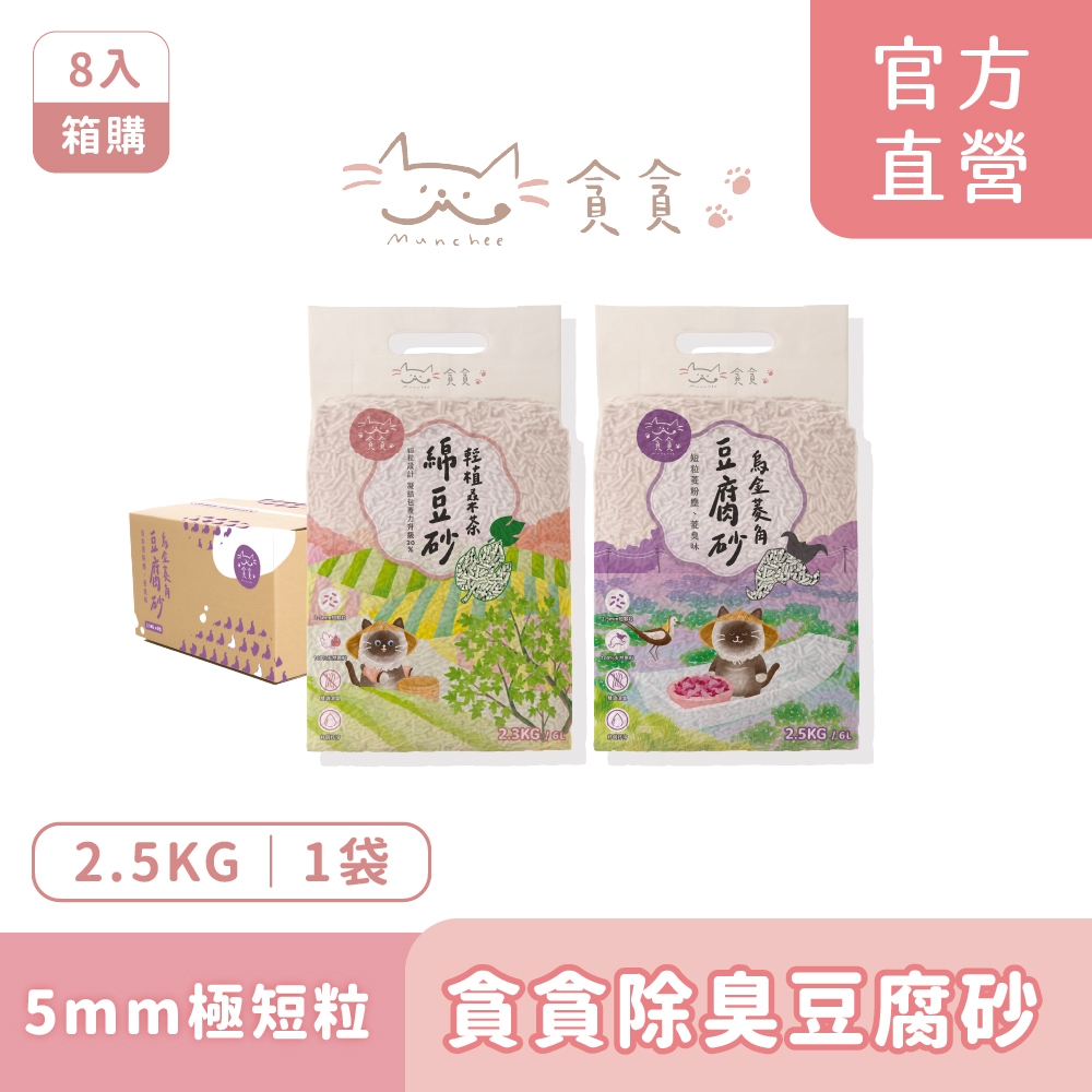 【Munchee 貪貪】生態除臭豆腐砂|5mm極短粒設計(6包入)烏金菱角豆腐砂2.5kg(6包入)|輕植桑茶綿豆砂2.3kg(6包入)Cat Litter & BoxesMunchee 貪貪生態貓食|官方旗艦店