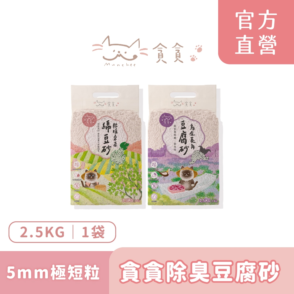 【Munchee 貪貪】生態除臭豆腐砂|5mm極短粒設計烏金菱角豆腐砂2.5kg|輕植桑茶綿豆砂2.3kgCat Litter & BoxesMunchee 貪貪生態貓食|官方旗艦店