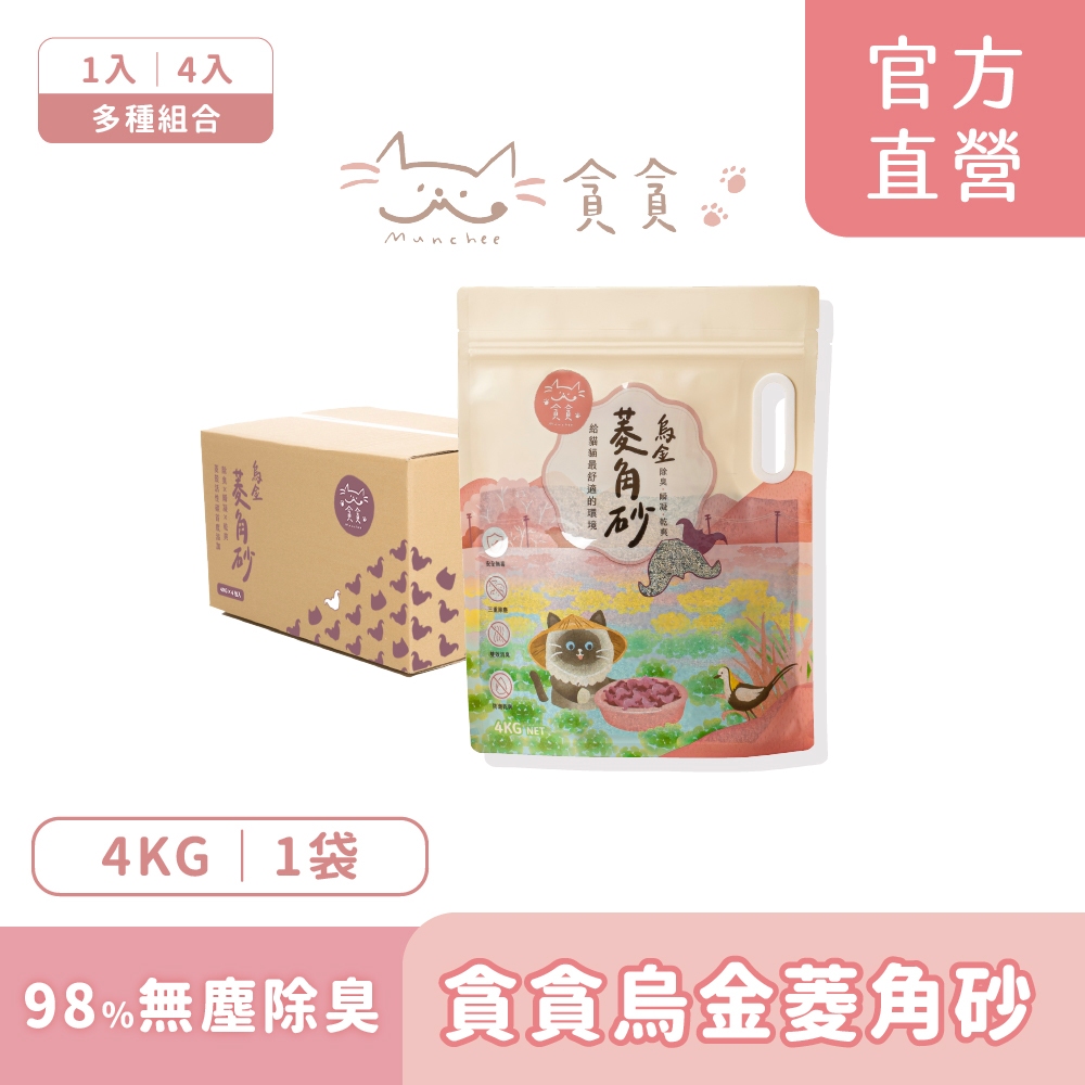 【Munchee 貪貪】烏金菱角砂 貓砂 礦砂 無塵 高效除臭 乾爽 瞬凝 4kg/包1包入(4kg)-限7-11/宅配|4包入(4kg*4)-限宅配Cat Litter & BoxesMunchee 貪貪生態貓食|官方旗艦店