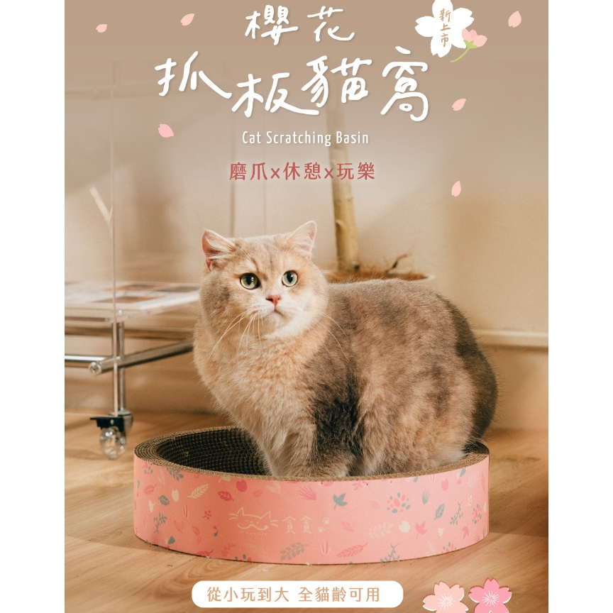 【Munchee 貪貪】櫻花圓形抓板貓窩 貓抓板 貓窩 貓玩具櫻花圓形抓板貓窩Pet FurnitureMunchee 貪貪生態貓食|官方旗艦店
