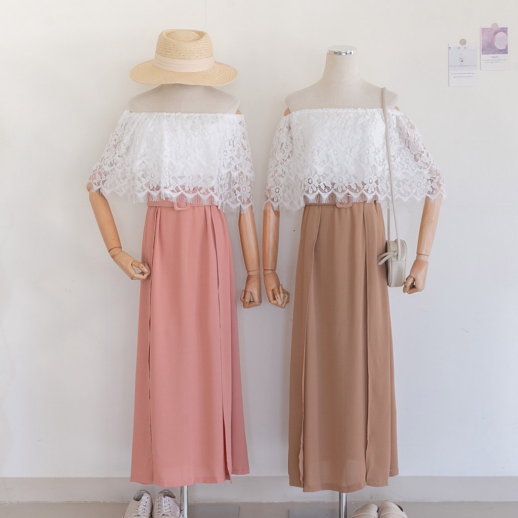 MUMU【O11263】打造逆天長腿 超仙蕾絲一字領上衣+開衩褲裙 兩件式套裝 露肩上衣 美腿褲裙 現貨 婚禮西瓜紅,F|深藍,F|黑,F|卡其,FIndividual SetsMUMUSHOP 韓系女裝批發價 全站實拍
