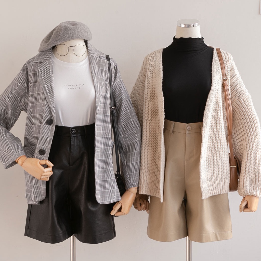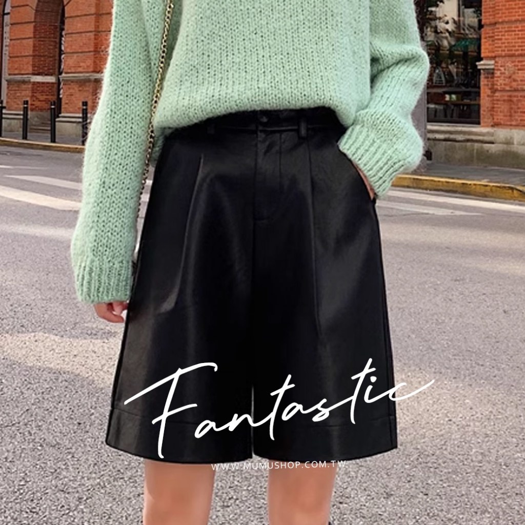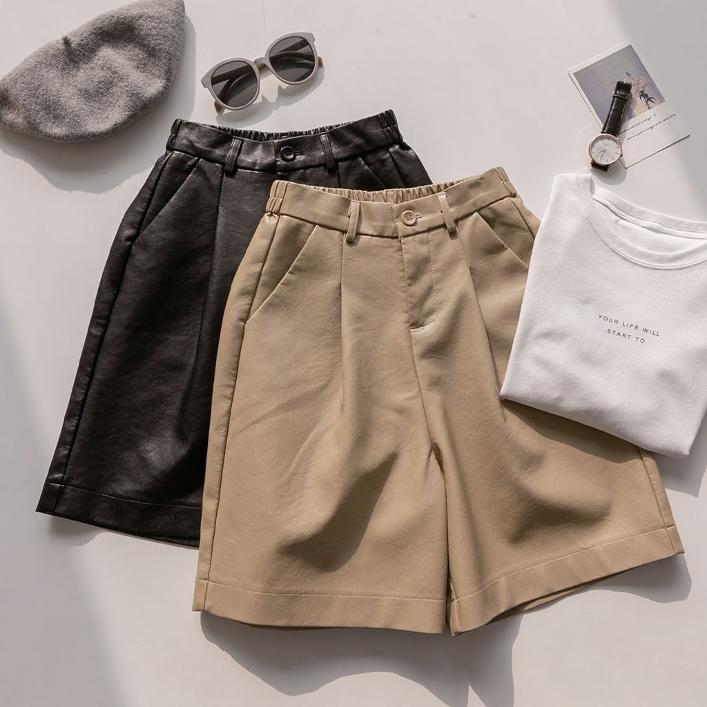 MUMU【P92866】高腰後鬆緊五分皮短褲卡其,M|卡其,L|卡其,XL|黑,S|黑,M|黑,L|黑,XL|卡其,SShortsMUMUSHOP 韓系女裝批發價 全站實拍