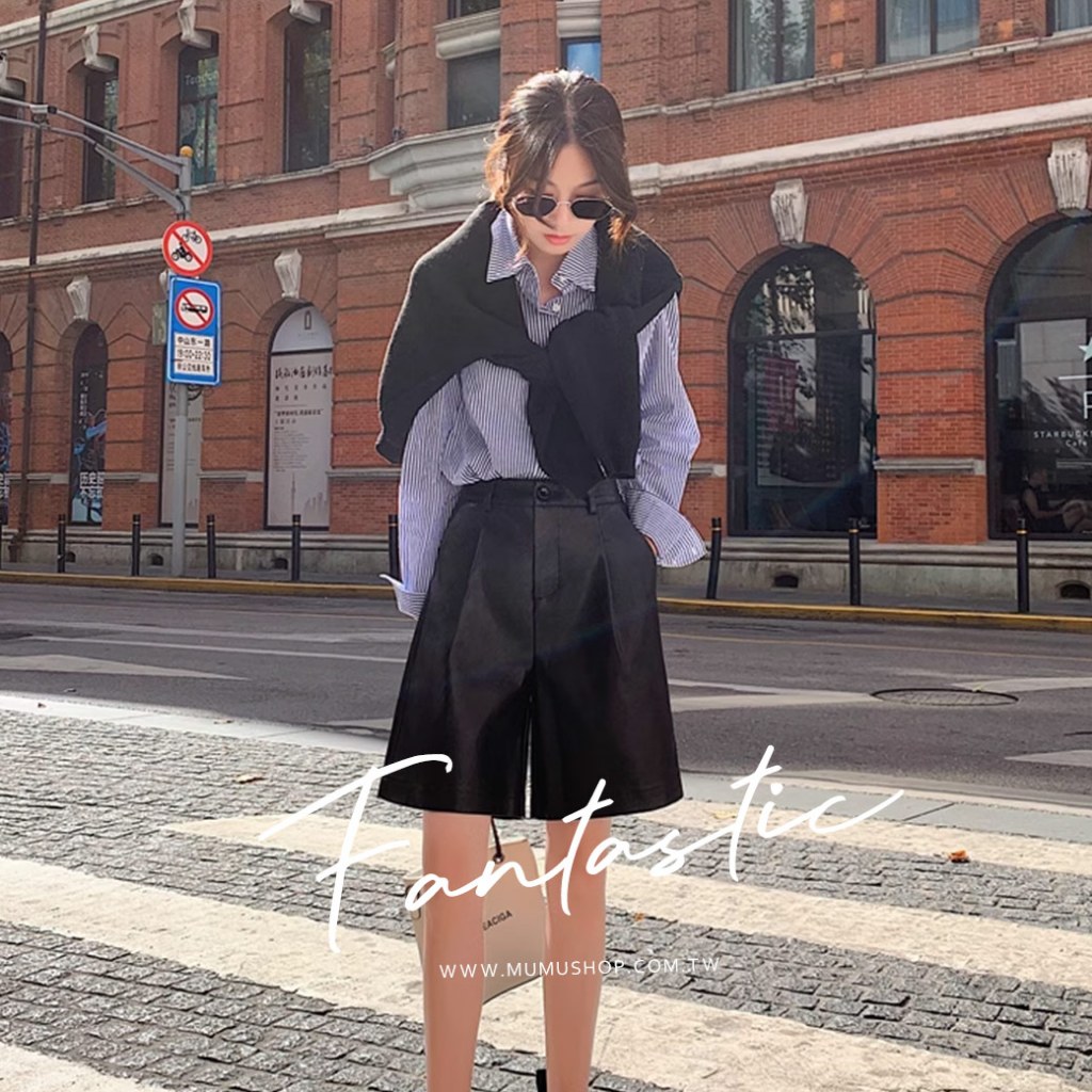 MUMU【P92866】高腰後鬆緊五分皮短褲