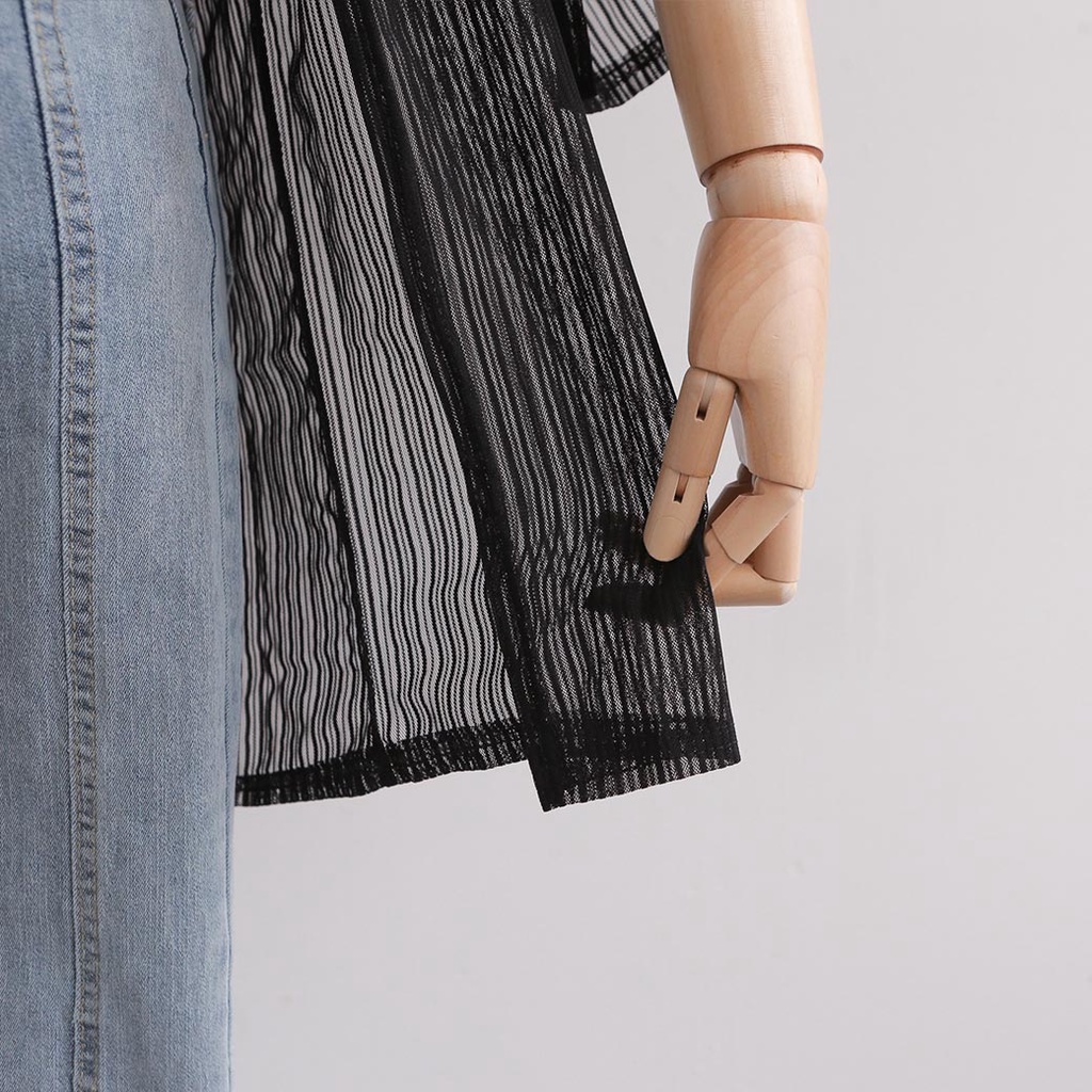 MUMU【C14293】雪紡外套 透膚外套 直條紋罩衫 網紗上衣 長版罩衫 防曬罩衫外套 休閒外套 開襟外套 開襟罩衫黑-F|白-FWinter Jackets & CoatsMUMUSHOP 韓系女裝批發價 全站實拍
