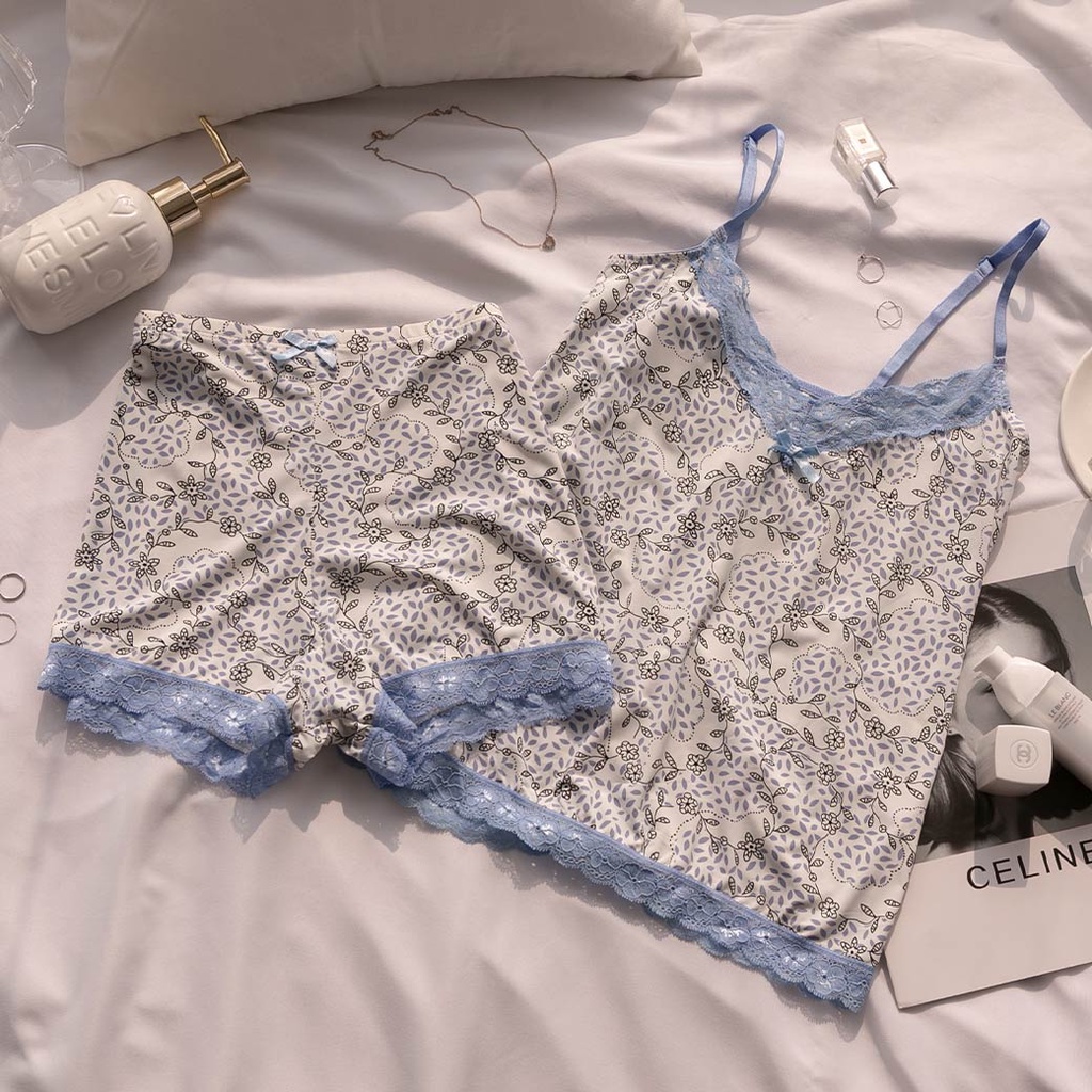 MUMU獨家自訂款【L45655】緞面睡衣 絲綢睡衣 台灣現貨電子發票 細肩帶 細肩帶睡衣 家居服套裝 內搭背心 冰絲睡藍色碎花,XL|藍色碎花,S|藍色碎花,M|藍色碎花,LOthersMUMUSHOP 韓系女裝批發價 全站實拍