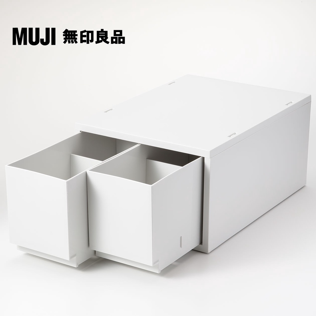 【MUJI 無印良品】PP盒/深型/2格/附隔板(正反疊)/白灰