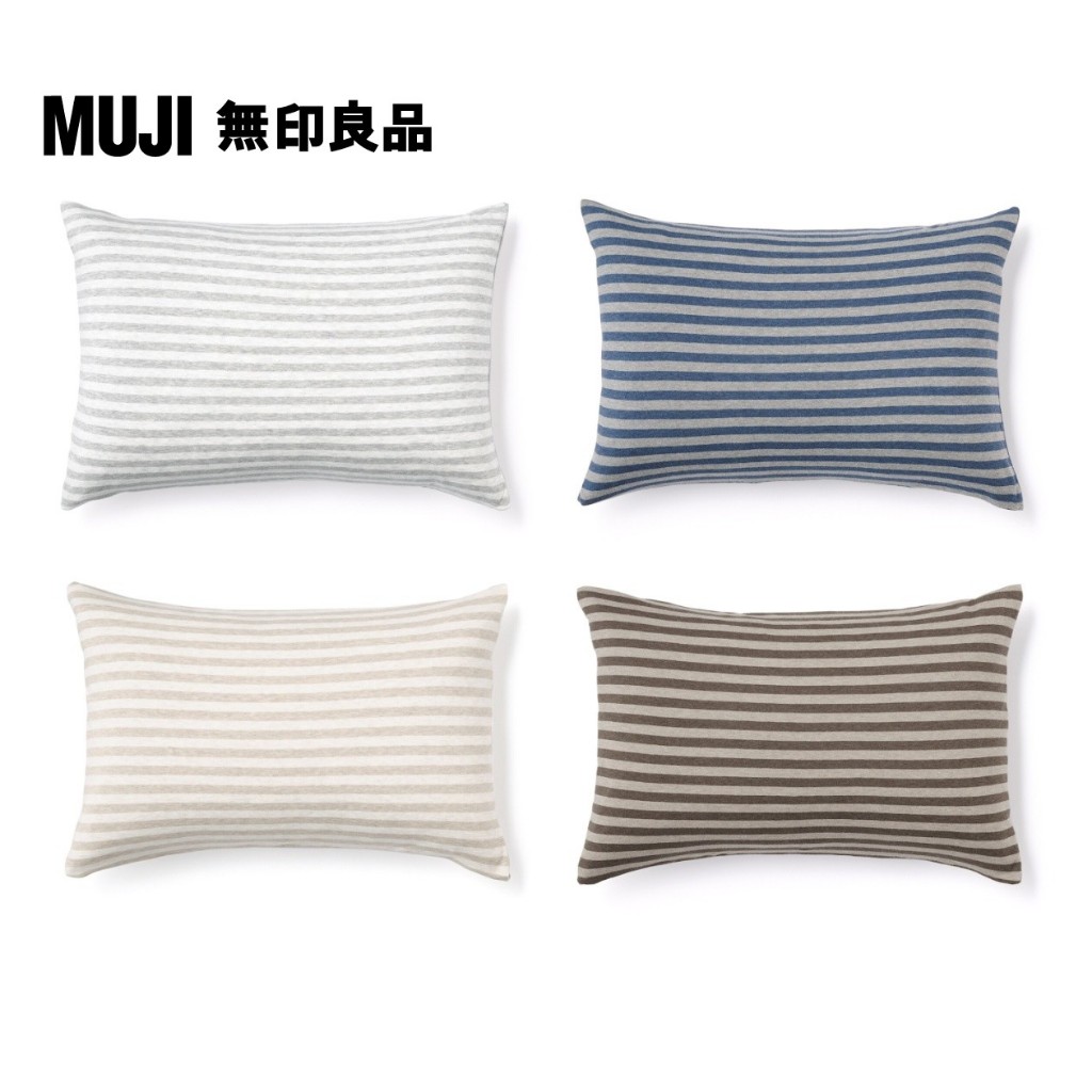 【MUJI 無印良品】棉天竺枕套/50混深藍橫紋|混灰橫紋|混米橫紋|混棕橫紋PillowsMUJI無印良品 官方旗艦店
