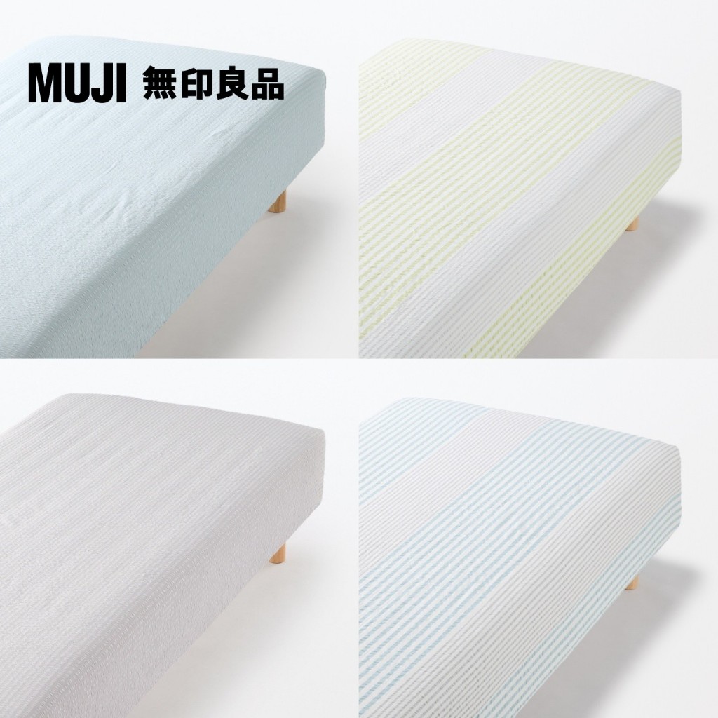 【MUJI 無印良品】棉凹凸織床包/S/單人綠色條紋|藍條紋|灰色|藍色Bedsheets, Pillowcases & Bolster CasesMUJI無印良品 官方旗艦店