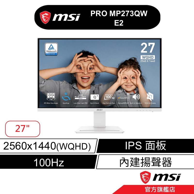 msi 微星 PRO MP273QW E2 商用螢幕 27型/WQHD/IPS/100hz/白色MP273QW E2MSI微星品牌旗艦店