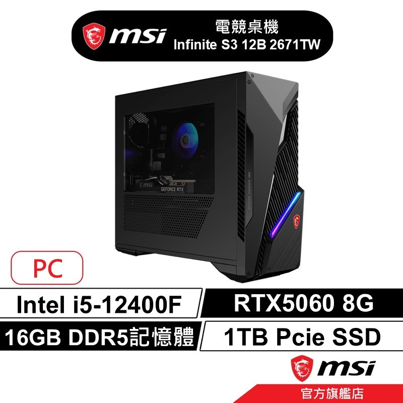 msi 微星 Infinite S3 12B 2671TW 電競桌機 12代i5/16G/1TB/5060 8GInfinite S3 12B 2671,原規格(i5/16G/1T)|Infinite S3 12B 2671,客製 32G Ram|Infinite S3 12B 2671,客製 64G Ram|Infinite S3 12B 2671,客製 換2T SSD|Infinite S3 12B 2671,客製 32G/換2T SSD|Infinite S3 12B 2671,客製 64G/換2T SSDDesktop PCMSI微星品牌旗艦店